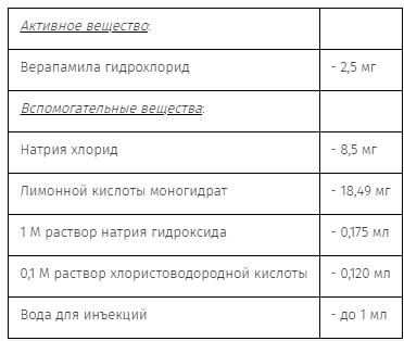 Раствор верапамила готовят путем разведения 2 мл раствора препарата 2,5 мг/мл в 100-150 мл 0,9% раствора натрия хлорида.