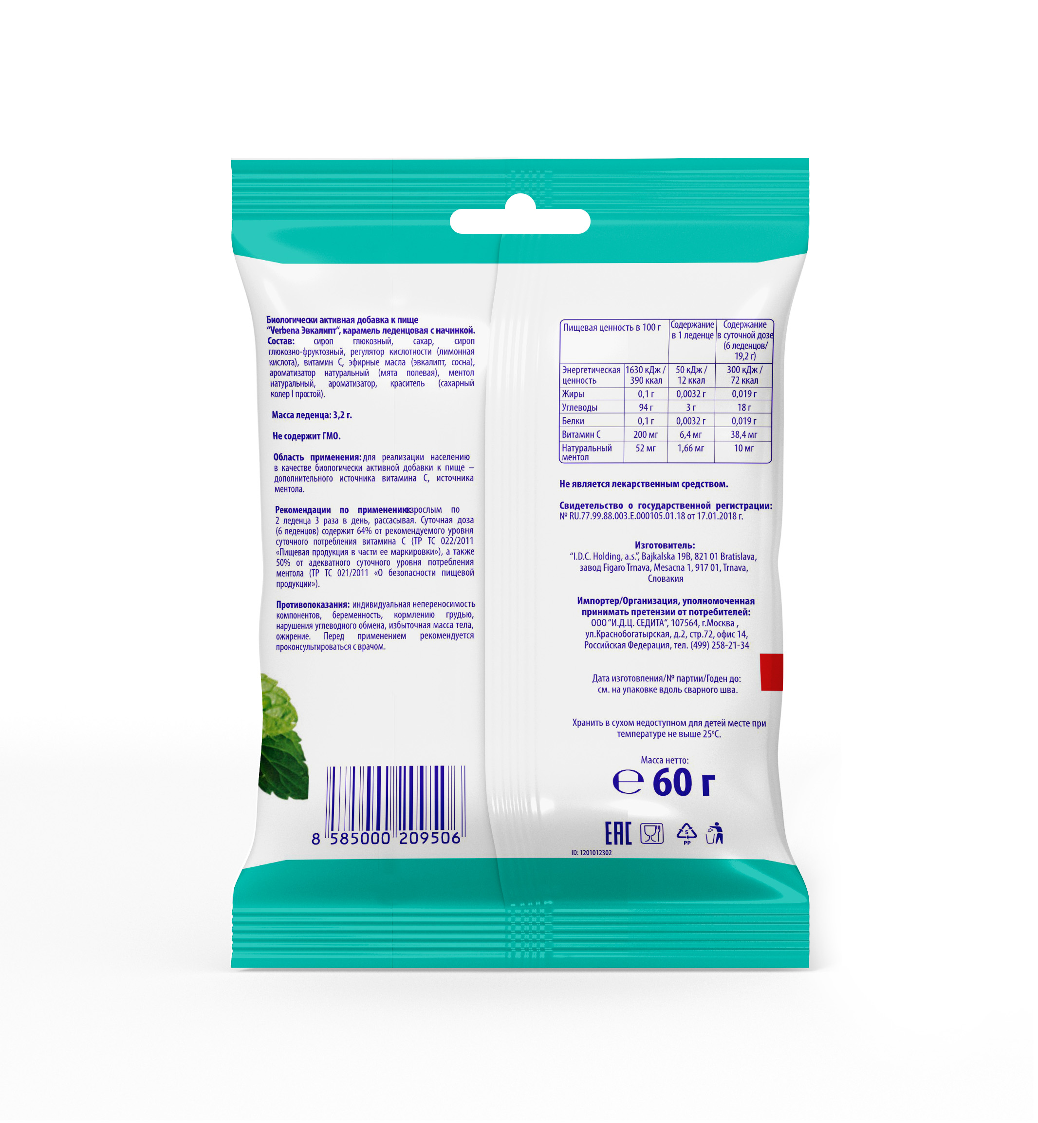 Сертификаты и лицензии “Вербена 60 г карамель с эвкалиптом”