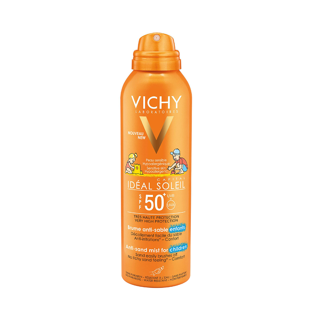 Солнцезащитное средство Vichy Capital Soleil Brume Anti-sable enfants SPF 50+ надёжно защищает нежную кожу детей от негативного воздействия ультрафиолета. Благодаря инновационной текстуре - эффект анти-песок - снижается риск раздражения кожи от контакта с песком. Все посторонние частицы легко удаляются с поверхности кожи. Виши Капитал Идеал Солей Спрей-вуаль детский Антипесок SPF 50+ легко и приятно использовать - быстро впитывается, не оставляет белых следов. Отсутствие в составе ароматизаторов значительно повышает переносимость средства.