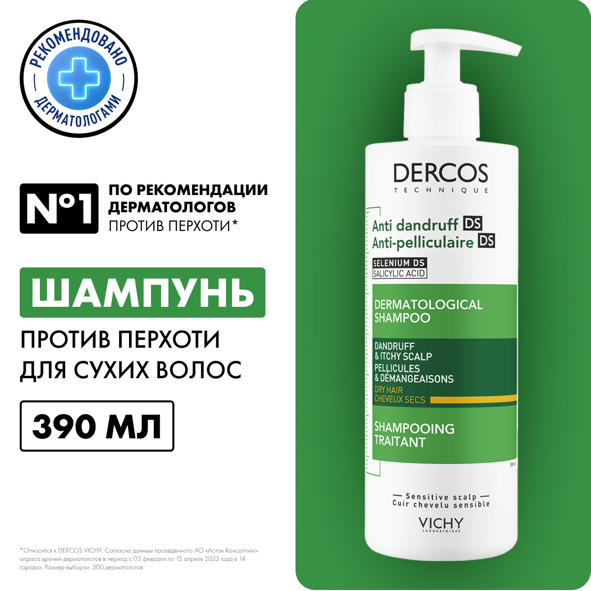 Шампунь Vichy Dercos Anti-pelliculaire Shampooing traitant Cheveux secs в удобной упаковке обладает мягкой кремовой текстурой и чувственным ароматом, с первого применения удаляет все видимые чешуйки перхоти. В состав входят ингредиенты, подавляющие развитие патогенных микроорганизмов, бактерий и грибков. Поэтому после мытья головы перхоть повторно не появляется в течение 6 недель. Виши Деркос Шампунь-уход против перхоти для сухих волос сохраняет естественный уровень рН и гидролипидную защиту кожи, успокаивает раздражение и снимает воспаление – вас больше не беспокоит зуд.. Дышащая пленка защищает волосы и кожу головы от потери влаги, солнечные фильтры нейтрализуют ультрафиолетовое излучение.