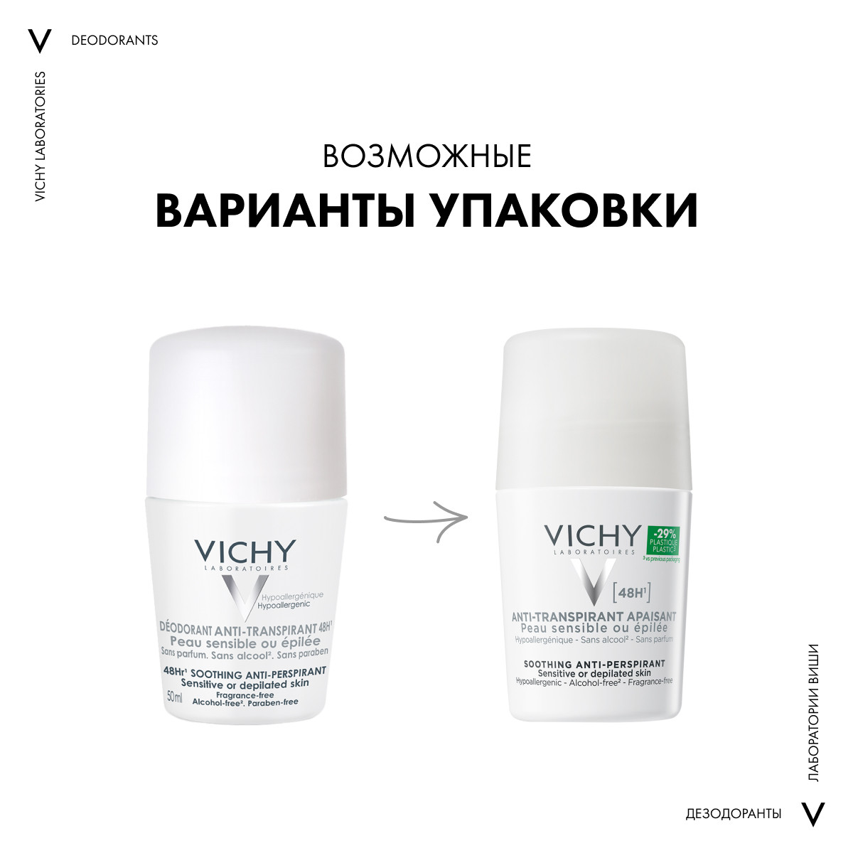 Суперделикатный дезодорант-антиперспирант Vichyanti-transpirant Peau sensible 48 H на 48 часов блокирует выработку пота в области подмышечных впадин, на одежде не появятся влажные пятна. На сухой коже нет условий для интенсивного развития бактерий, являющихся причиной специфического запаха. Шариковый дезодорант Виши 48 ч для чувствительной кожи не вызывает раздражения, поскольку не содержит этилового спирта и парабенов. Его можно применять даже после депиляции. Воздухопроницаемая пленка препятствует пересыханию эпидермиса, защищает от внешних воздействий.