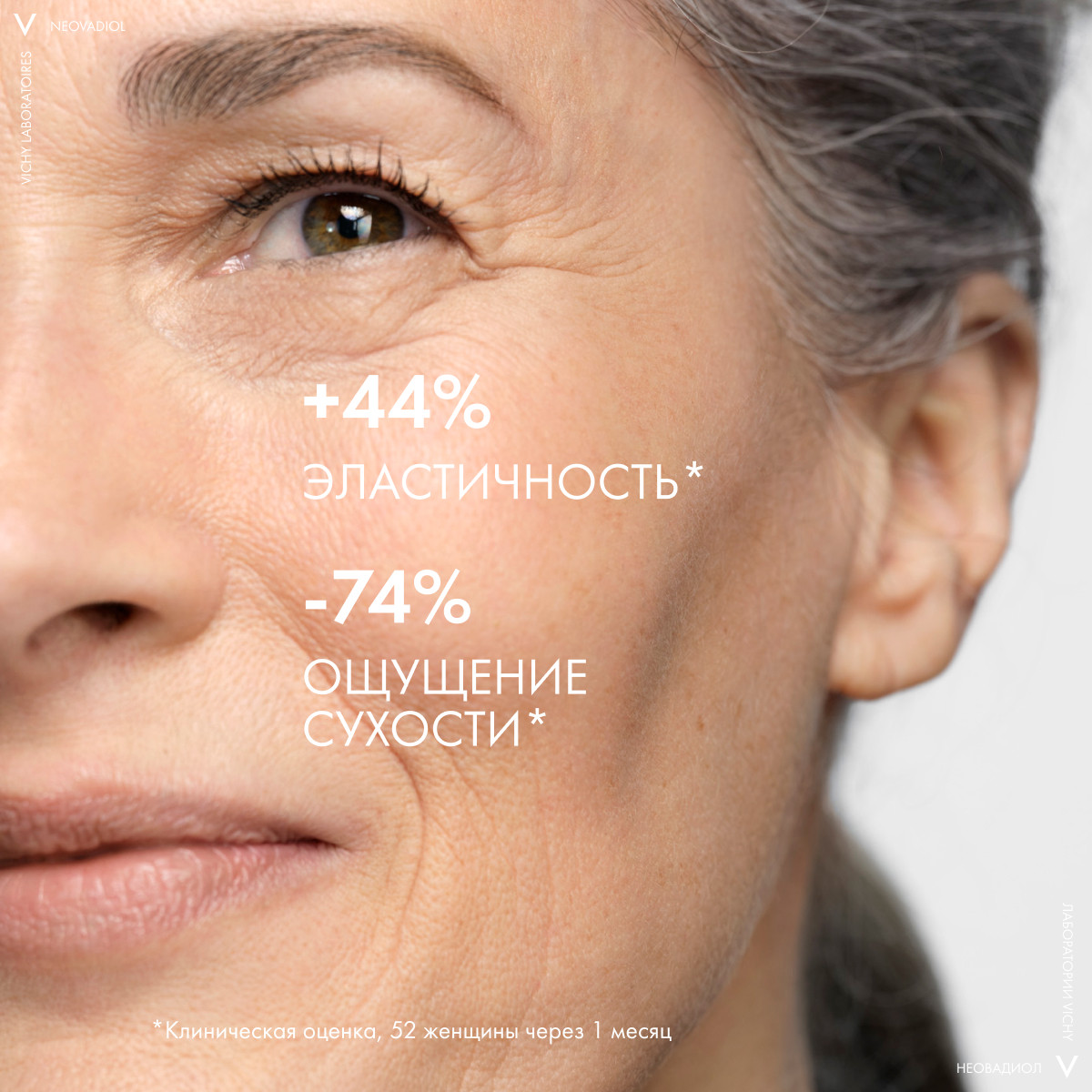 В ходе клинических испытаний с участием 52 женщин после 1 месяца применения отмечено дерматологами повышение эластичности кожи +44% и уменьшение сухости кожи на 74%.