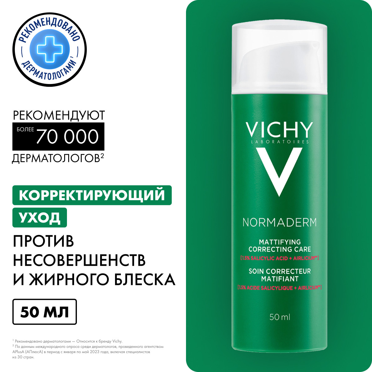 Корректирующий несовершенства, увлажняющий уход для проблемной кожи жирного и комбинированного типа. Благодаря активным компонентам в составе Vichy Normaderm Mattifyng Correcting care день за днем работает над улучшением текстуры кожи, предотвращает поствоспалительную пигментацию, сужает поры и уменьшает жирный блеск. Доказанная эффективность продукта в периоды гормональных пиков, в том числе после подросткового периода.
