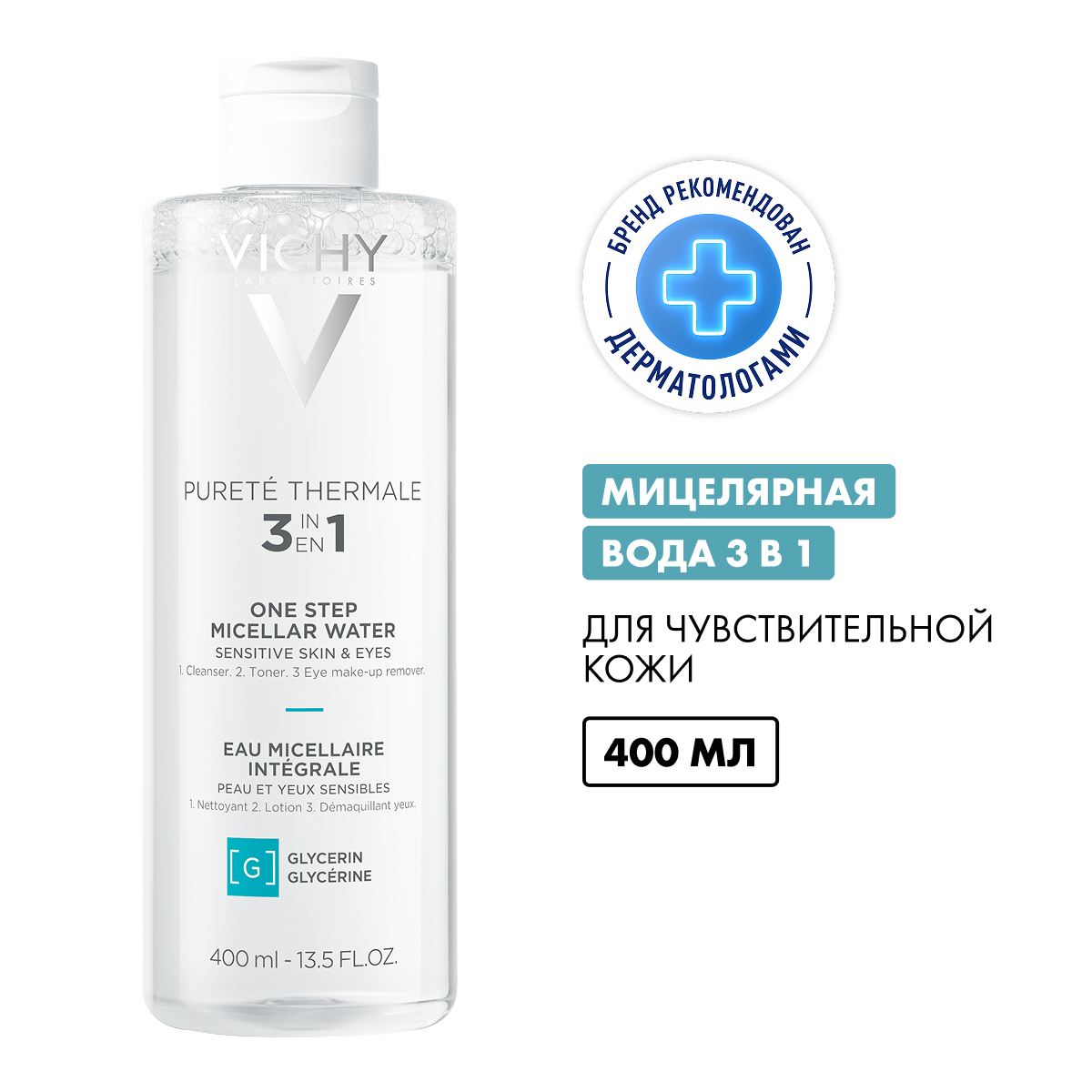 Мицеллярная вода с минералами, представленная профессиональным брендом Виши, является революционным средством очищающего ухода для чувствительной кожи. Vichy Purete Thermale Mineral Micellar Water деликатно, без особых усилий, удаляет макияж с глаз и губ, не раздражая, не пересушивая слизистую, дарит коже ощущение свежести и комфорта. Формула, обогащенная глицерином и пантенолом, увлажняет, смягчает нежную дерму. Продукт на 89% состоит из термальной воды, насыщенной минералами, которая обеспечивает коже дополнительное увлажнение.