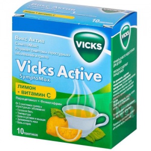Инструкция по применению Викс Актив СимптоМакс Плюс 5 г 10 шт порошок для приготовления раствора для приема внутрь лимон