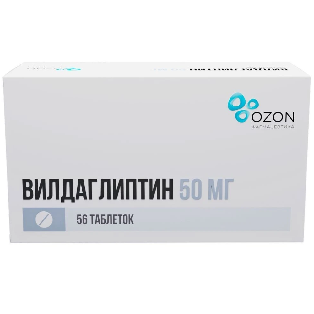 Действующее вещество: вилдаглиптин – 50,00 мг.