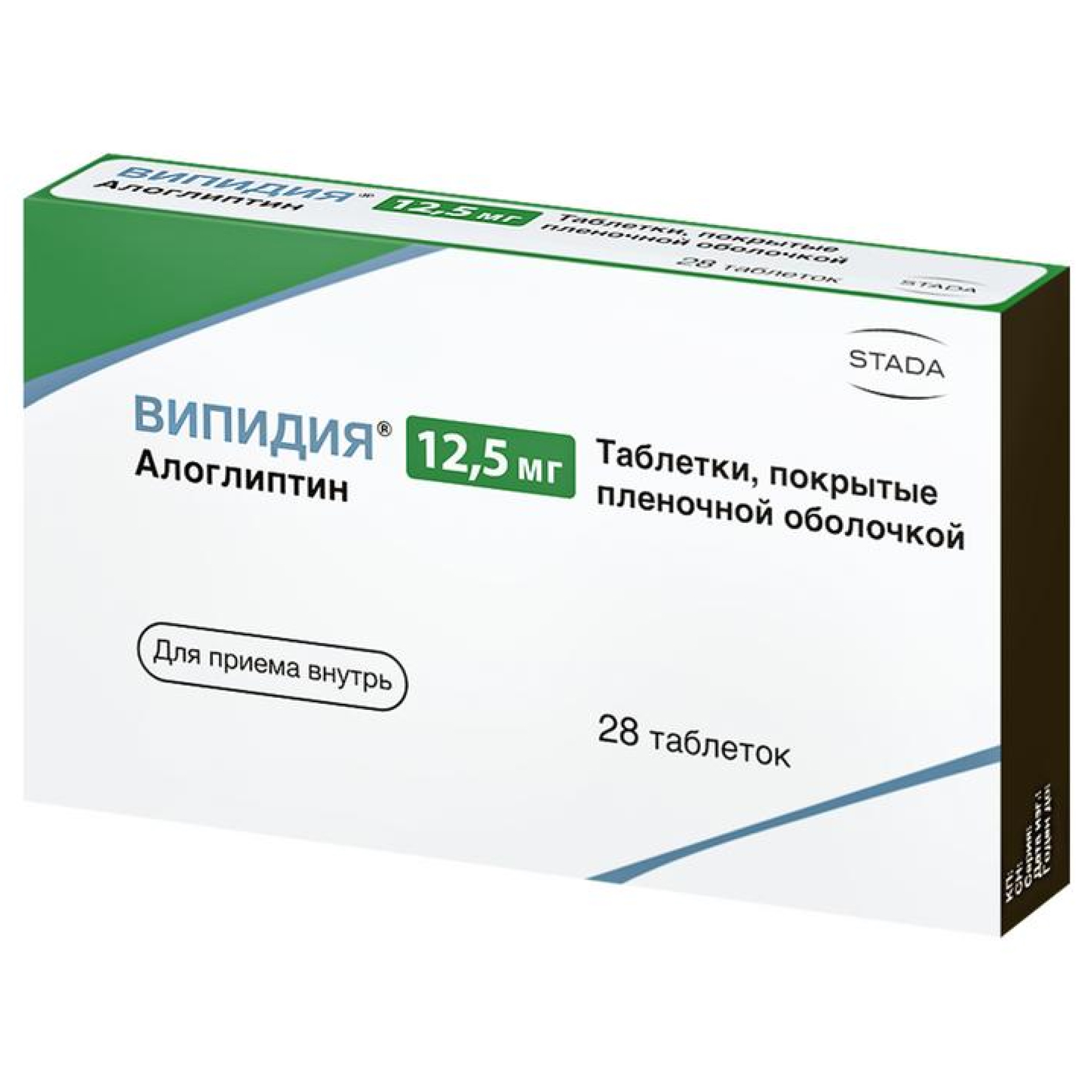 Рекомендуемая доза препарата Випидия® составляет 25 мг 1 раз/сут в качестве монотерапии или в дополнение к метформину, тиазолидиндиону, производным сульфонилмочевины или инсулину, или в качестве трехкомпонентной комбинации с метформином, тиазолидиндионом или инсулином.