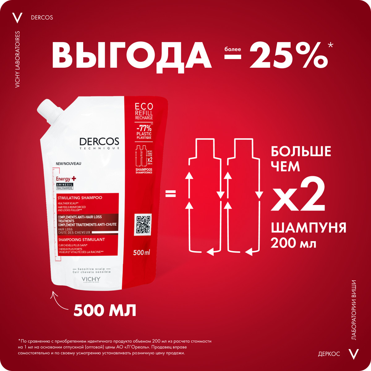 Vichy dercos technique шампунь против выпадения волос energy+ сменный блок