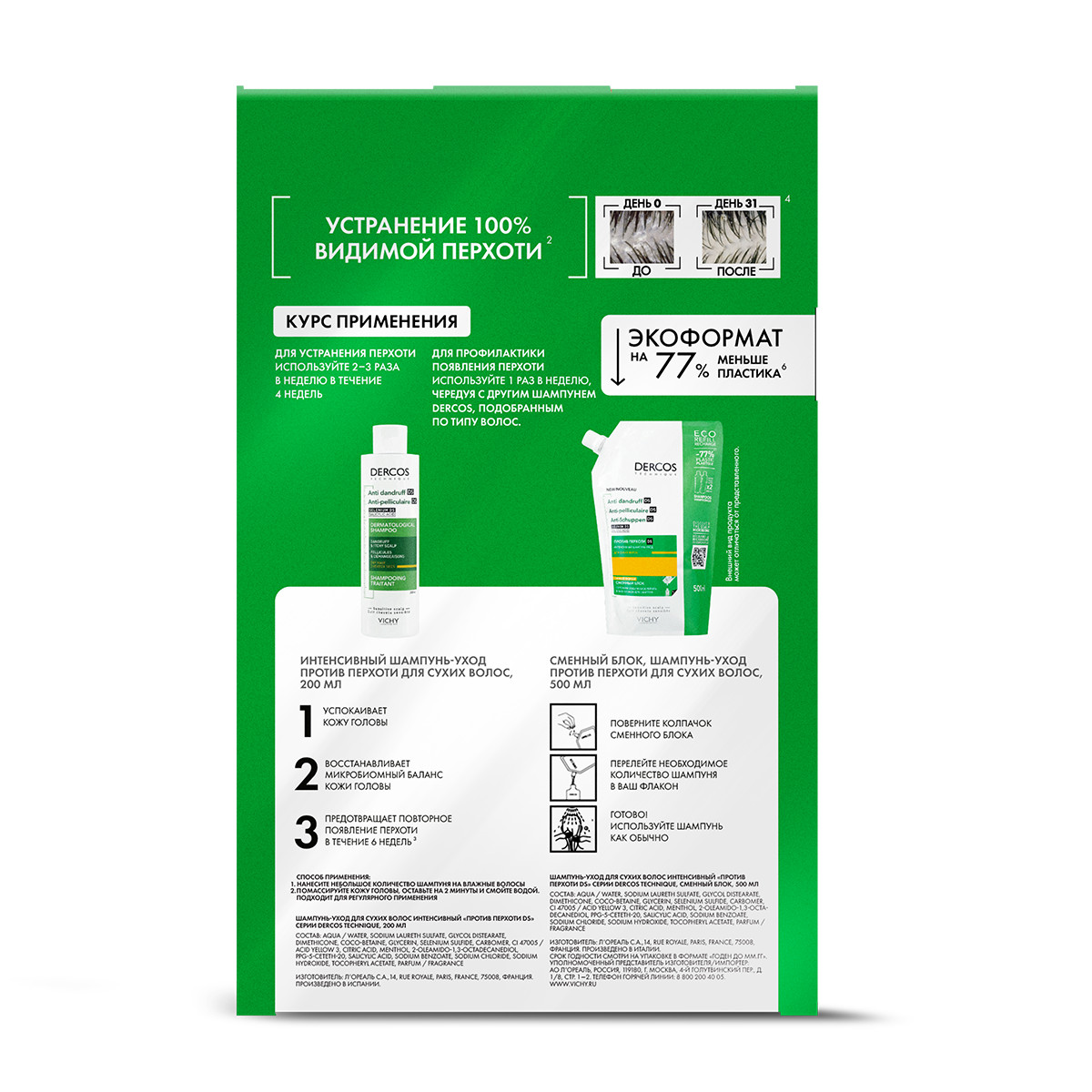- Устраняет видимую перхоть на 100%.* Результат заметен уже после 1-го применения