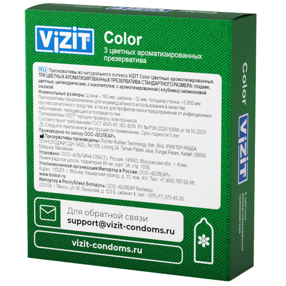 Vizit Color 3 шт презервативы цветные ароматизированные ⭐ купить по низкой цене в аптеке Таблетка.ру (Ваша №1) | Москва и Московская область