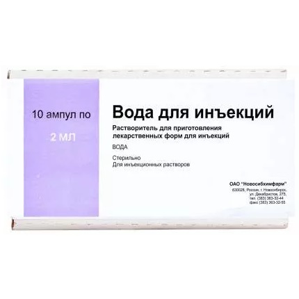Вода для инъекций может использоваться только в качестве растворителя. Из-за отсутствия в ней веществ осмотического действия может возникнуть опасность гемолиза при самостоятельном ее введении.