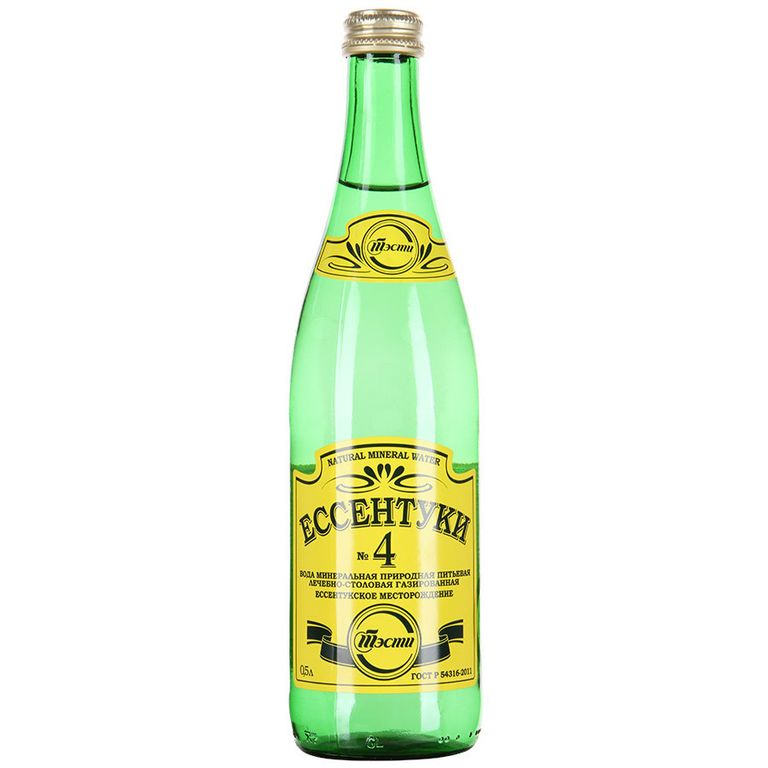 Минеральная лечебно - столовая вода «Ессентуки № 4» известна благотворительным влиянием на функциональное состояние желудочнокишечного тракта. Глубина скважины – 998, 9 м. Температура воды – от 41 ° до 45 ° C. Группа XXVa хлоридно-гидрокарбонатная (гидрокарбонатно-хлоридная) натриевая, борная. Приём минеральной лечебно-столовой воды «Ессентуки № 4» улучшает кислотообразующую функцию желудка, двигательную функцию всего желудочно-кишечного тракта, улучшает обменный процесс в организме, функции печени, поджелудочной железы, желчевыводящих и мочевыводящих путей. Улучшает общее состояние людей с заболеваниями желчевыводящих путей и поджелудочной железы, с хроническими гастритами, язвенной болезнью желудка и двенадцатиперстной кишки, хроническим колитом. Проводит полное очищение организма от шлаков, оказывает желчегонное и мочегонное действие.