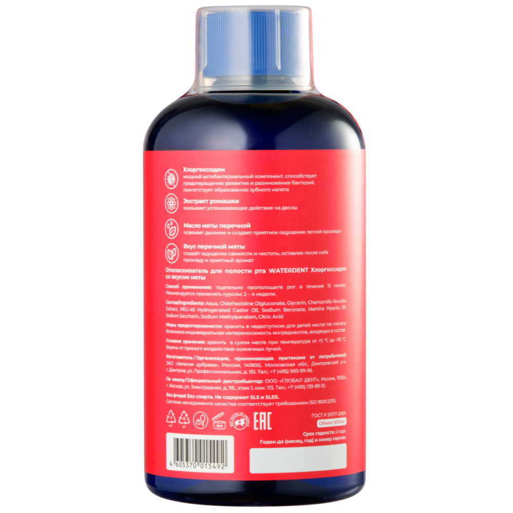 Waterdent 500 мл ополаскиватель для полости рта хлоргексидин мята без фтора ⭐ купить по низкой цене в аптеке Таблетка.ру (Ваша №1) | Москва и Московская область