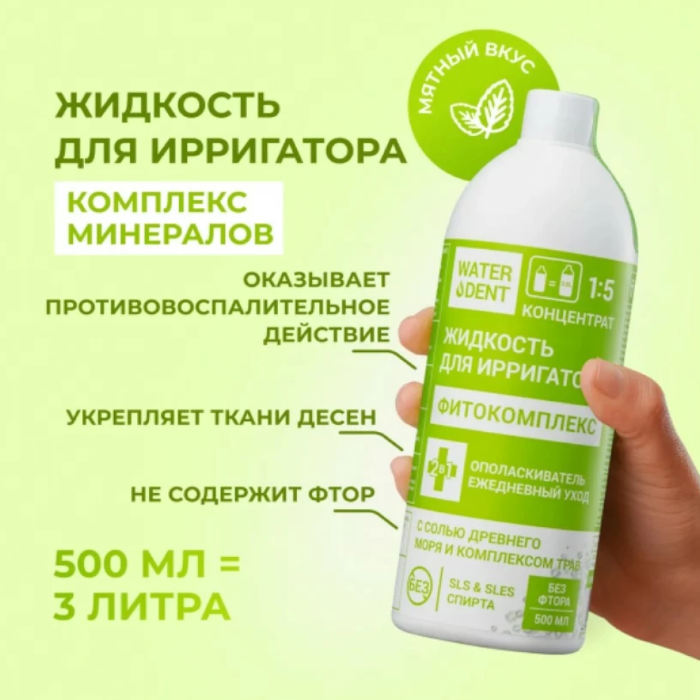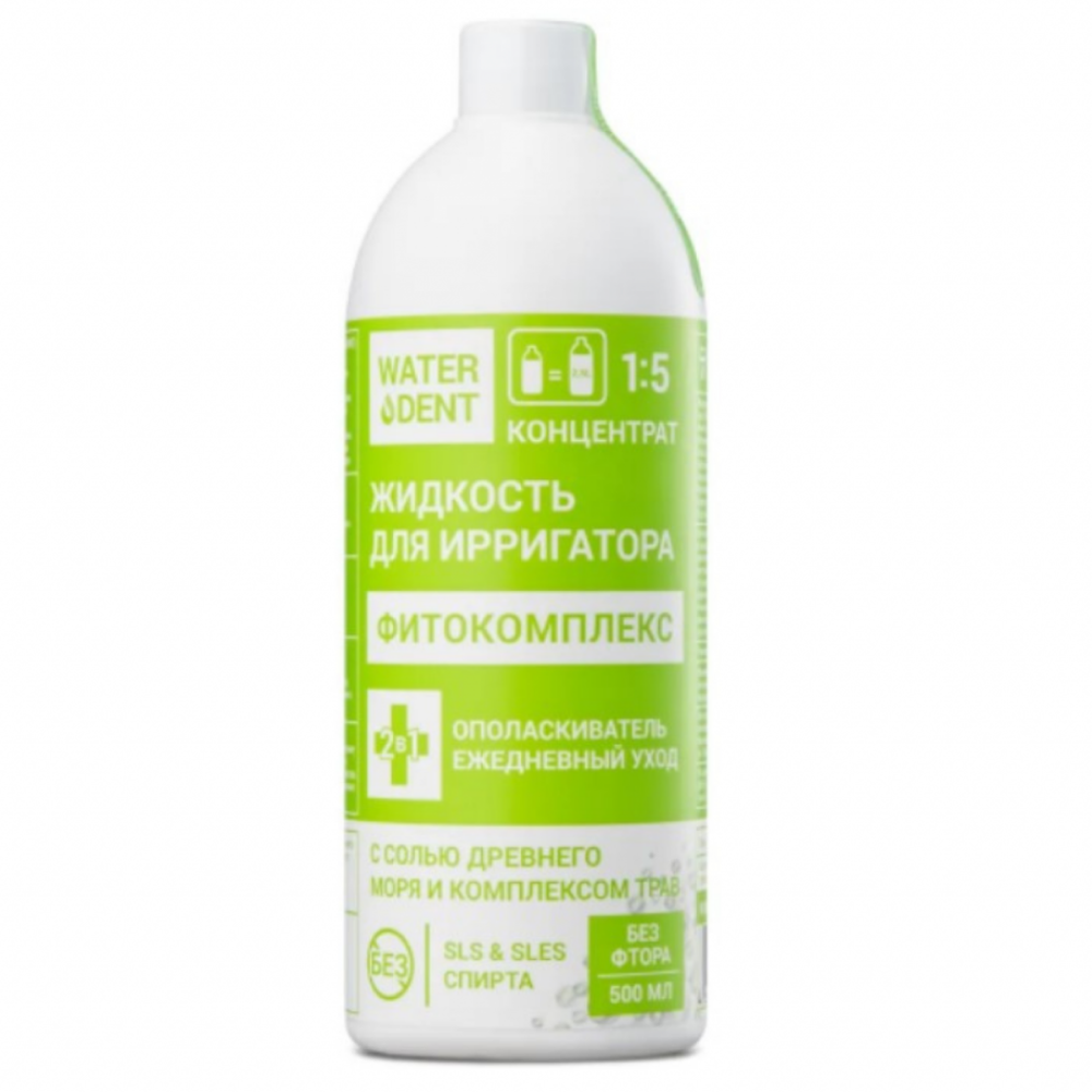 Waterdent Жидкость для ирригатора/Ополаскиватель для полости рта Фитокомплекс без фтора 500мл ⭐ купить в интернет-аптеке Таблетка.ру (Ваша №1) | Москва и Московская область