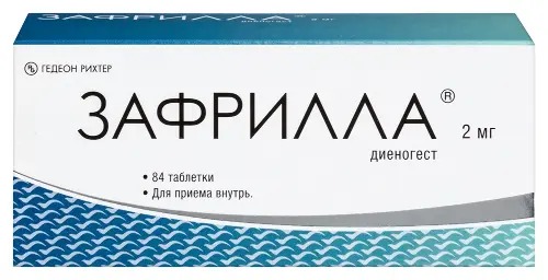 Нежелательные реакции (НР) чаще возникают в первые месяцы после начала терапии препаратом Зафрилла® и уменьшаются при продолжении лечения. Возможны изменения характера кровотечений, например, "мажущие" кровянистые выделения, нерегулярные кровотечения или аменорея. Самыми частыми НР, отмечаемыми при лечении диеногестом, являются головная боль, дискомфорт в молочных железах, депрессивное настроения и акне. Кроме того, у большинства пациенток, получающих диеногест, изменяется характер менструальных кровотечений. В течение первых 90 дней терапии диеногестом наблюдались следующие виды нарушений менструального цикла: аменорея, нечастые кровотечения, частые кровотечения, нерегулярные кровотечения, длительные кровотечения.