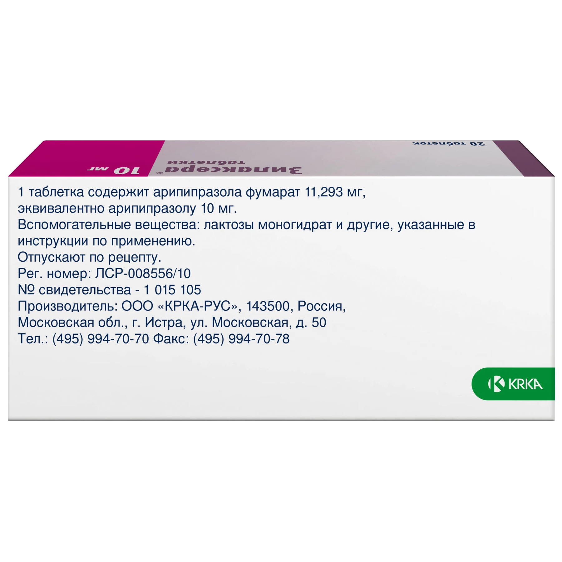 Активное вещество: арипипразол - 10 мг.