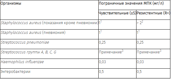 Чувствительность антибиотиков in vitro меняется в зависимости от географического региона и с течением времени, поэтому при выборе антибактериальной терапии необходимо учитывать местную информацию о резистентности.