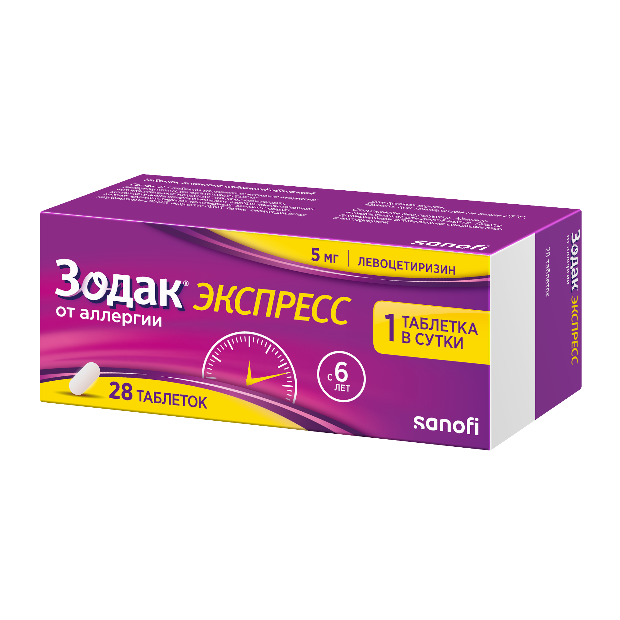 Если Вы забыли принять препарат Зодак® Экспресс, не принимайте двойную дозу для компенсации пропущенной, примите следующую дозу в обычное время.