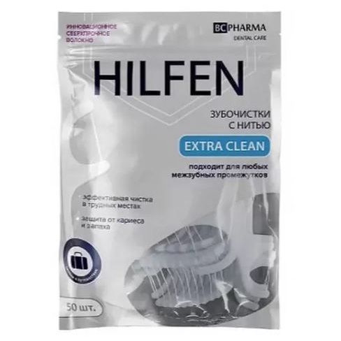Зубочистки с ниткой Hilfen Extra Clean выполнены из высококачественных и безопасных материалов — полиэтилена сверхвысокой молекулярной массы (UHMPE). Ручка изготовлена из полистирола (PS). Зубочистки пластиковые не содержат в своем составе бисфенол и перфторированную кислоту. Количество изделий в упаковке — 50 шт.