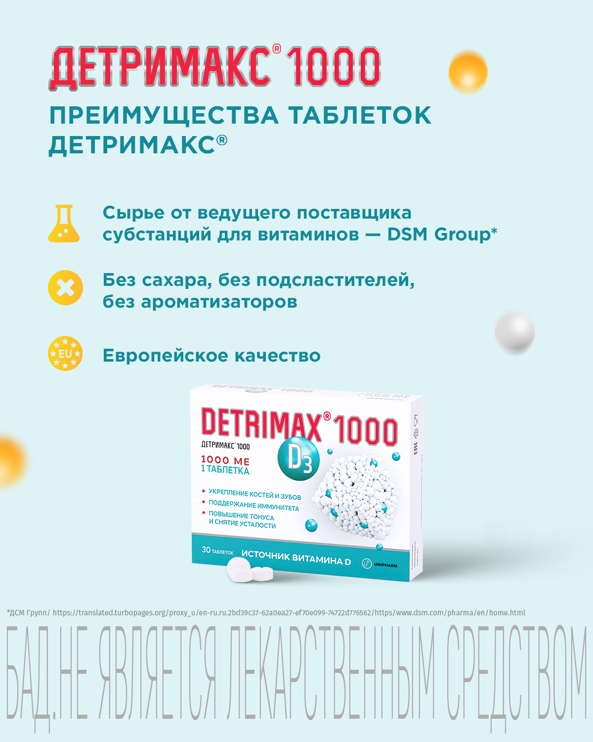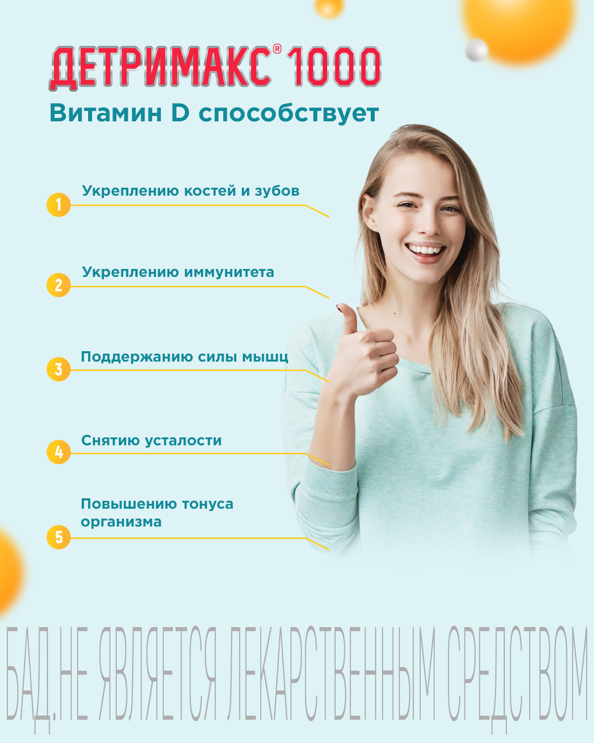 Детримакс — не лекарство, он относится к БАДам (биологически активным добавкам) — источникам витамина D. Действие препарата обусловлено эффектами, которые этот витамин оказывает на разные системы организма человека: