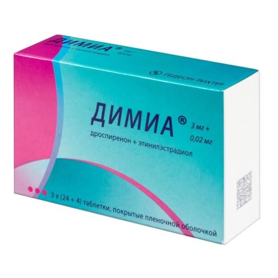 На фоне Димиа тромбы образуются редко. Обычно в первый год применения, особенно в первые три месяца или при возобновлении курса после перерыва в четыре недели и больше. При образовании тромба в вене ноги или стопы может развиваться тромбоз глубоких вен. При миграции сгустка крови по кровеносному руслу имеется опасность закупоривания легочной артерии, что приводит к ее тромбоэмболии. В венах других органов такое осложнение развивается редко. После отмены вероятность тромбообразования снижается до обычного уровня за несколько недель.