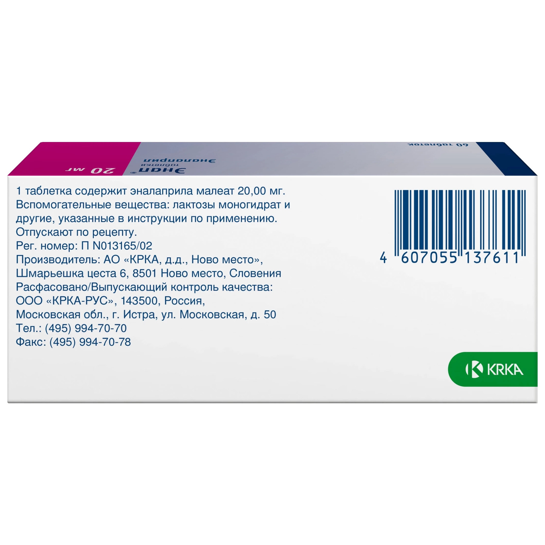 Энап производит компания КРКА-Рус ООО, KRKA d.d. Novo Mesto, KRKA d.d.