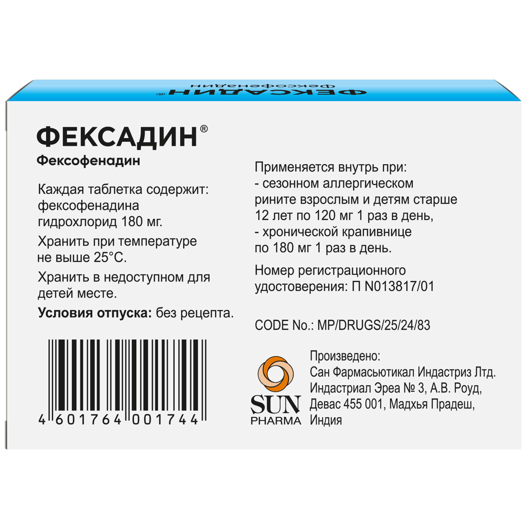 Фексадин эффективно устраняет проявления аллергии (заложенность носа, чихание), в том числе конъюнктивит, ринит, крапивницу. Уменьшает зуд кожных покровов, вызванный различными аллергенами. Минимально влияет на центральную нервную систему. Не вызывает сонливости благодаря низкой способности проникать через гематоэнцефалический барьер. Обладает меньшей кардиотоксичностью по сравнению с другими антигистаминными препаратами.
