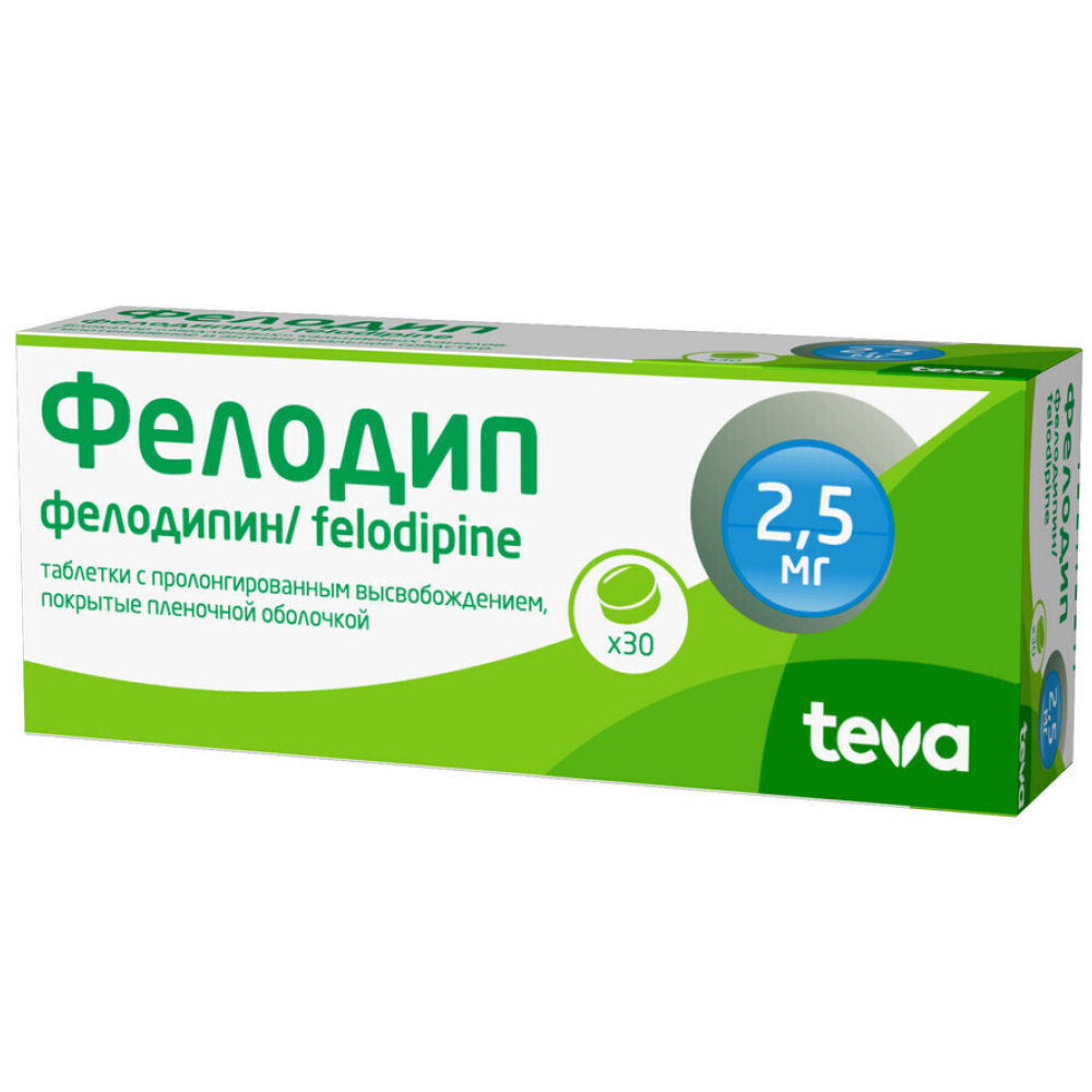 Фелодип 2,5 мг 30 шт таблетки с пролонгированным высвобождением покрытые пленочной оболочкой