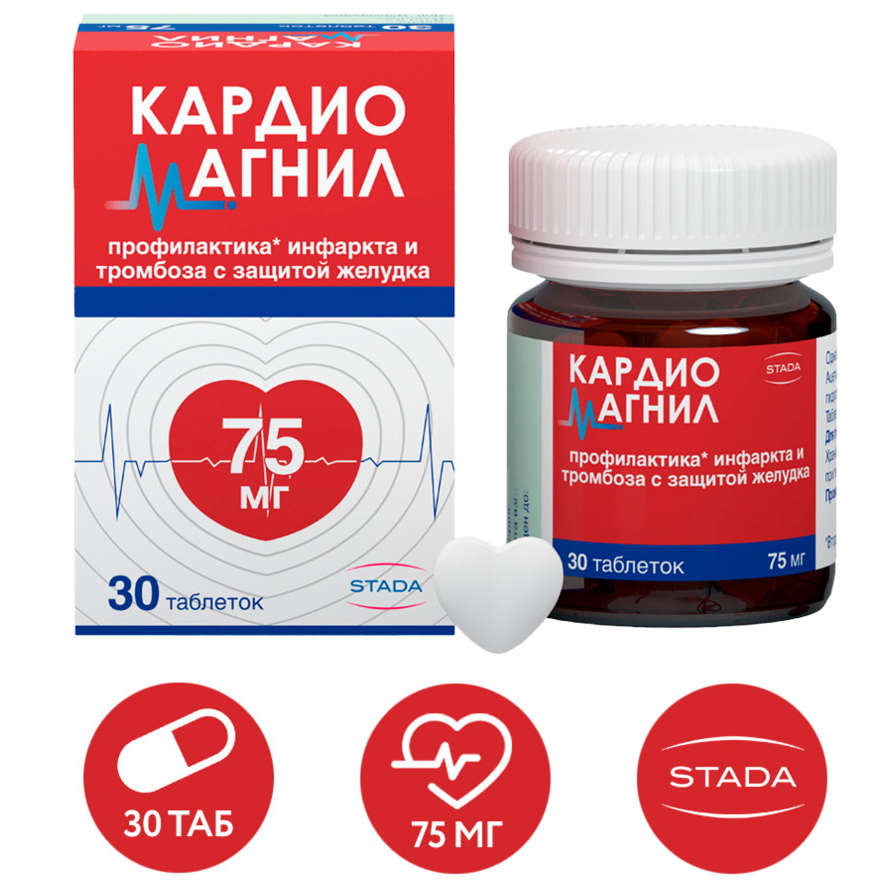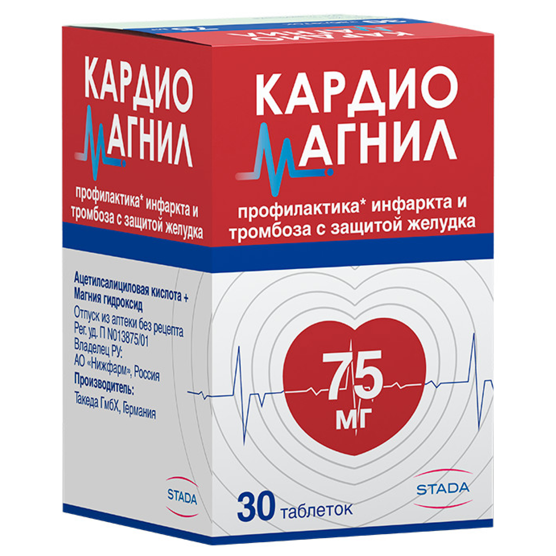 Для пациентов с нестабильной и стабильной стенокардией, а также для профилактики повторного инфаркта миокарда, транзиторной ишемической атаки (ТИА) и ишемического инсульта у лиц, ранее перенесших нарушения мозгового кровообращения, рекомендуемая доза составляет 1 таблетку Кардиомагнила (с дозировкой 75 мг + 15,2 мг или 150 мг + 30,39 мг) 1 раз в сутки.