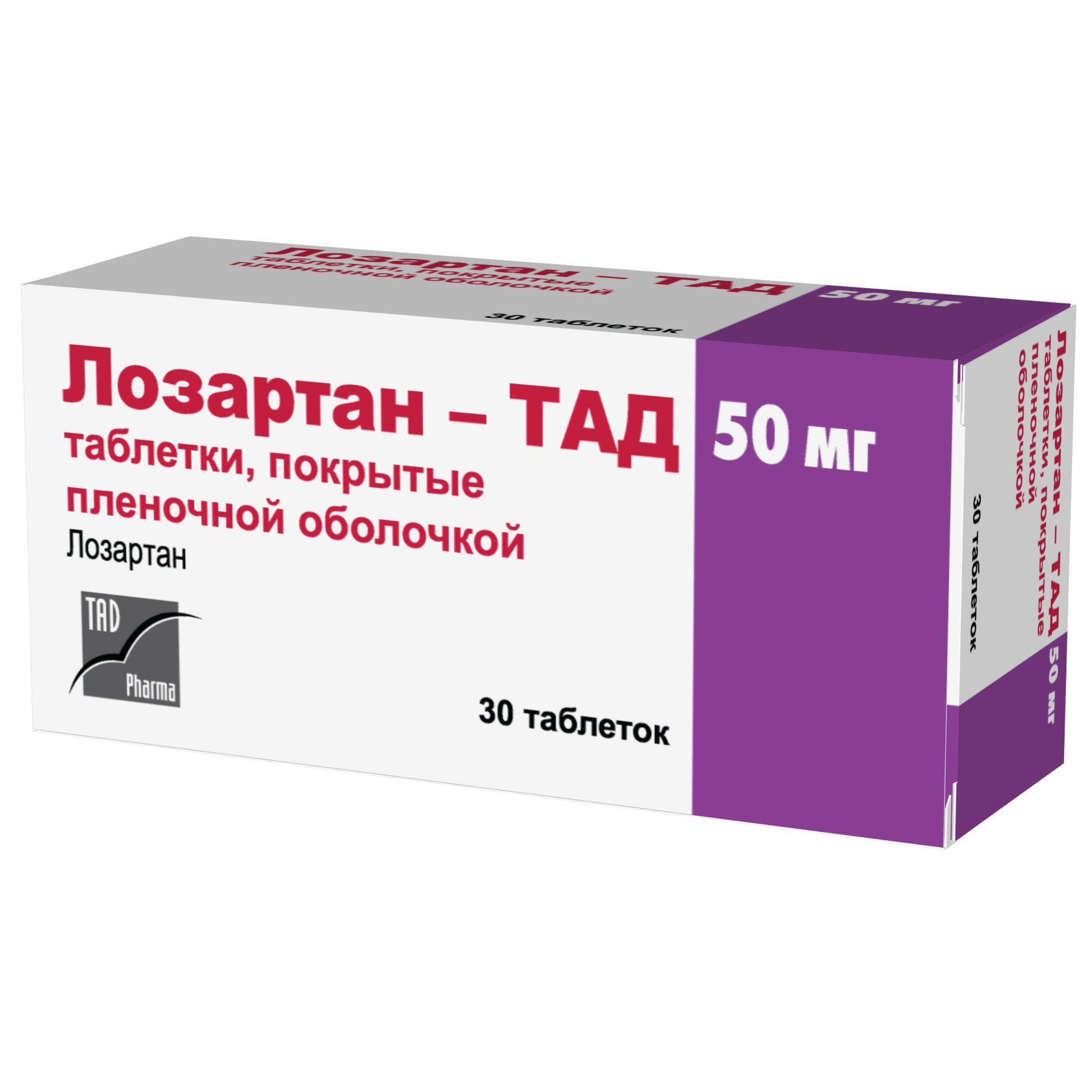 Лозартан-ТАД 50 мг 30 шт таблетки покрытые пленочной оболочкой