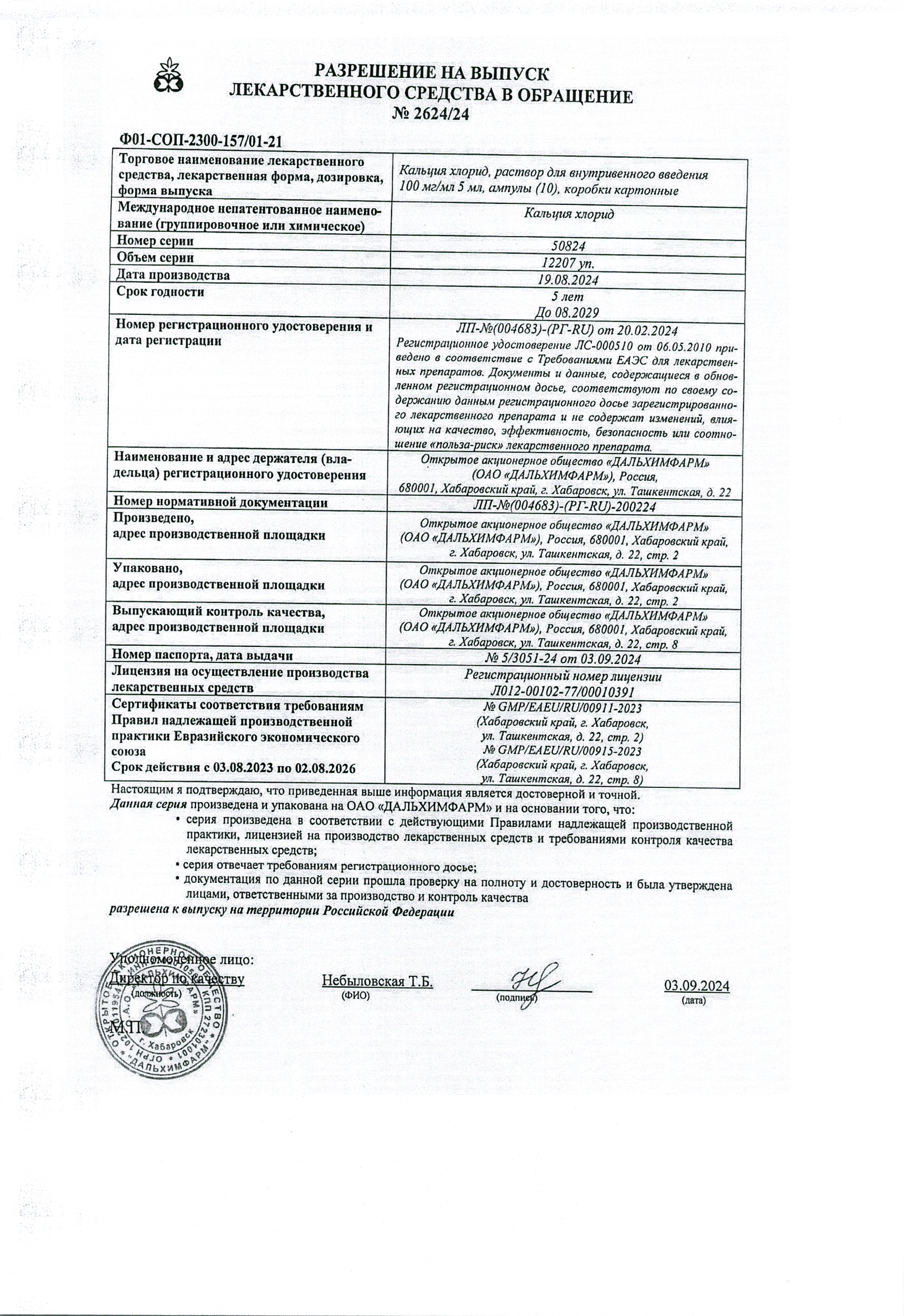 Кальция Хлорид 10 % 10 мл 10 шт раствор для внутривенного введения