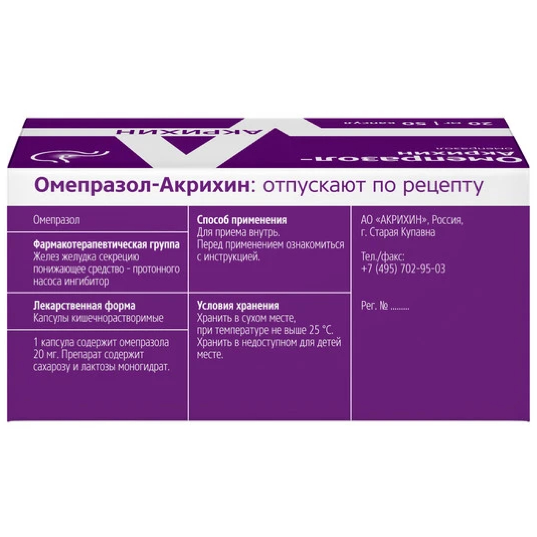 Омепразол-Акрихин 20 мг 50 шт капсулы кишечнорастворимые