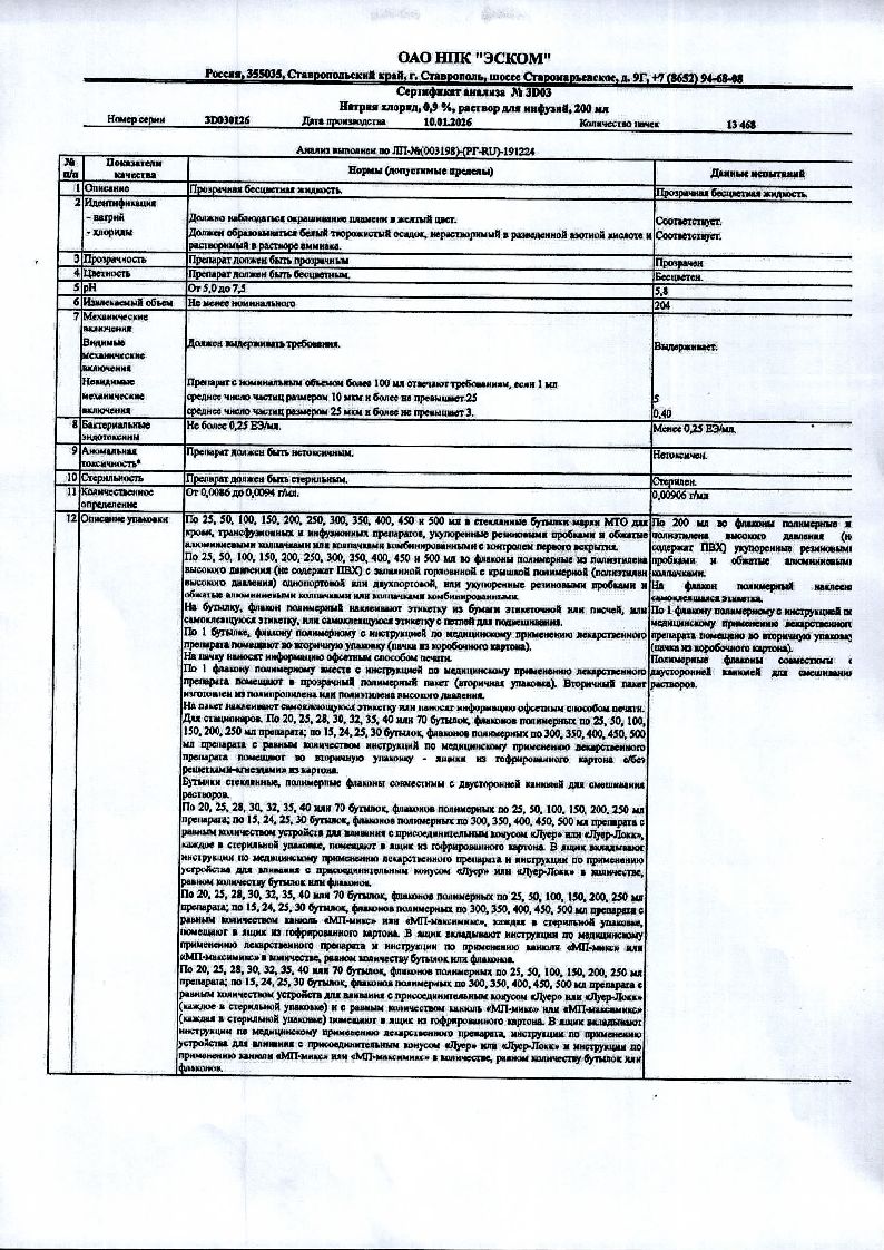 Натрия хлорид 0,9 % 500 мл раствор для инфузий бутылка стекло