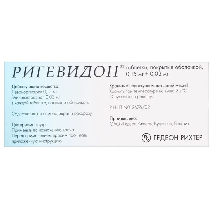 Если Вы забыли выпить таблетку Ригевидона в нужное время, примите ее, как только вспомните. Возможно, придется принять две таблетки в один день. Если Вы забыли выпить таблетку и прошло более 12 часов, защитный барьер от беременности будет снижен. Лучше в данном случае начинать наряду с приемом Ригевидона пользоваться барьерными методами контрацепции.