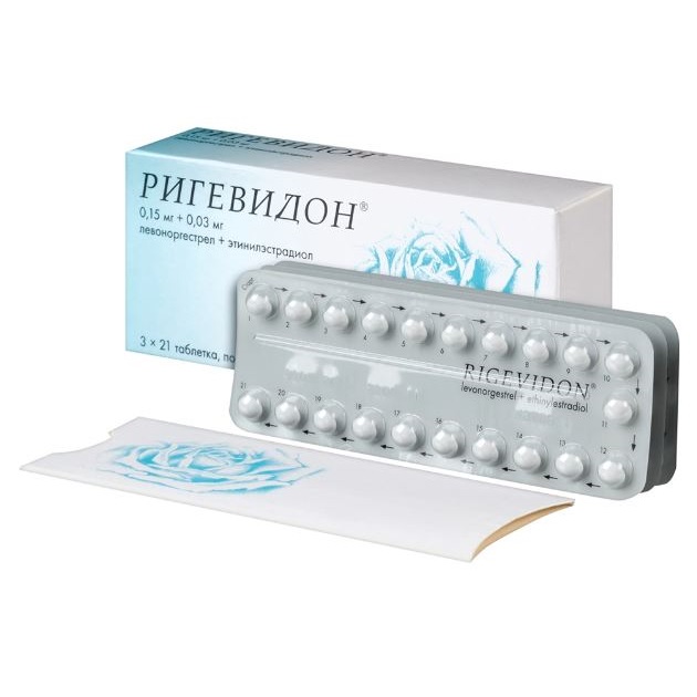 Основная информация по использованию: Ригевидон нужно пить по 1 таблетке ежедневно вне зависимости от приема пищи. Лучше делать это в одно время — утром, в обед или вечером. На блистере с таблетками изображена схема приема, где каждая таблетка пронумерована от 1 до 21. Начинайте пить с 1 таблетки, когда закончится 21 таблетка, нужно сделать перерыв в 7 дней и дальше пить 1 таблетку из следующего блистера. Как правило, в эти 7 дней наступает кровотечение отмены. Оно может возникнуть на 2-3 день и не закончиться до времени приема 1 таблетки из следующего блистера. Не следует ждать его окончания, начинайте принимать препарат в указанный день.