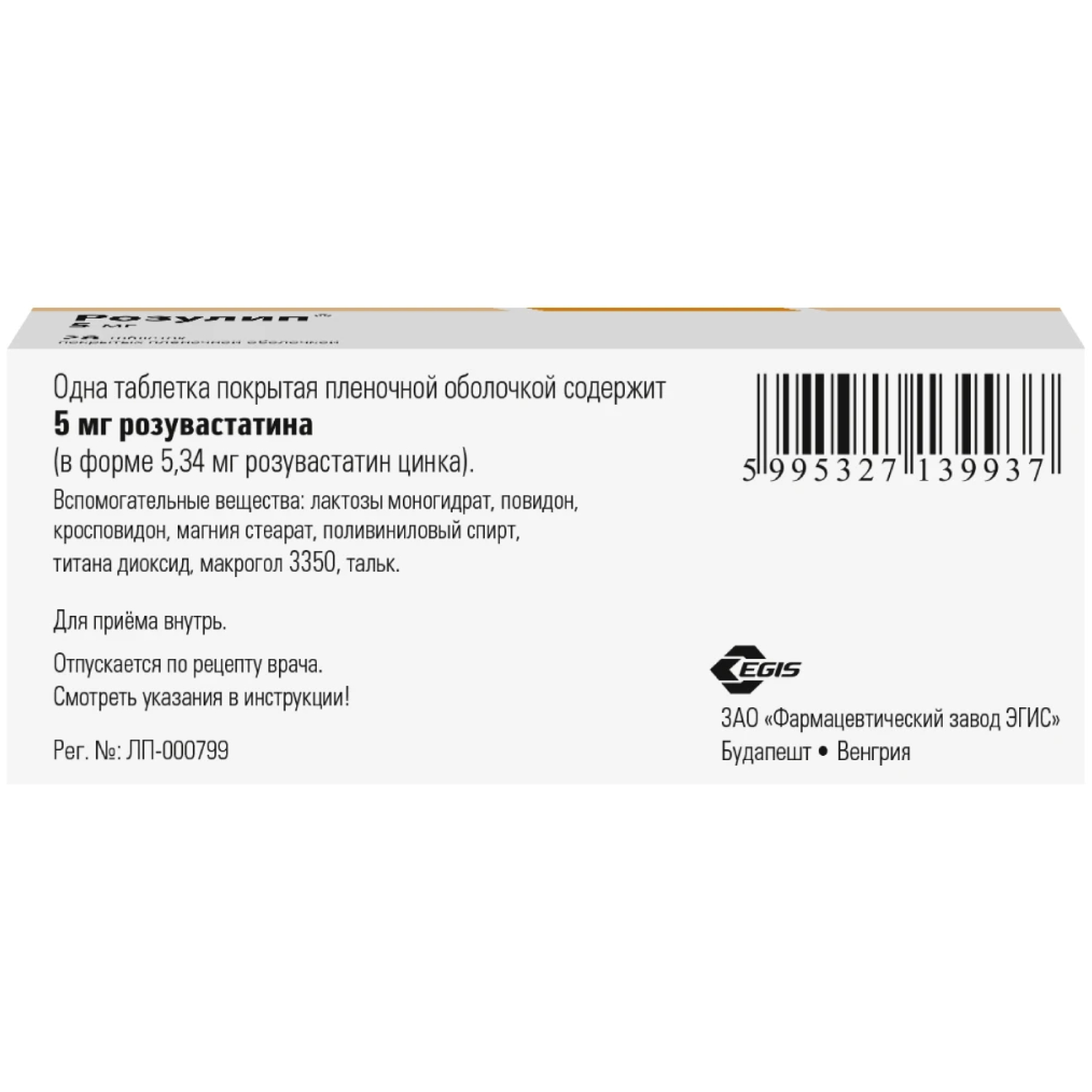 Розулип 5 мг 28 шт таблетки покрытые пленочной оболочкой