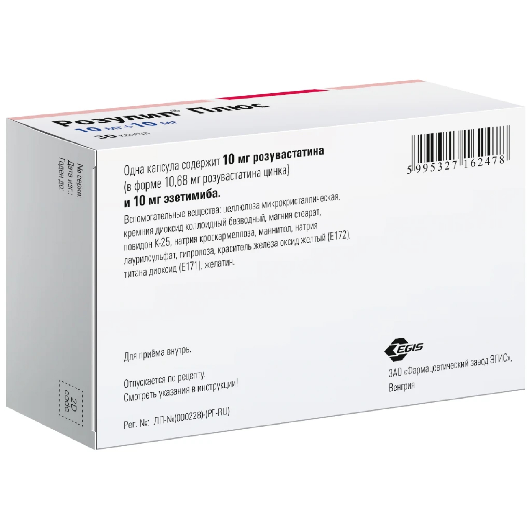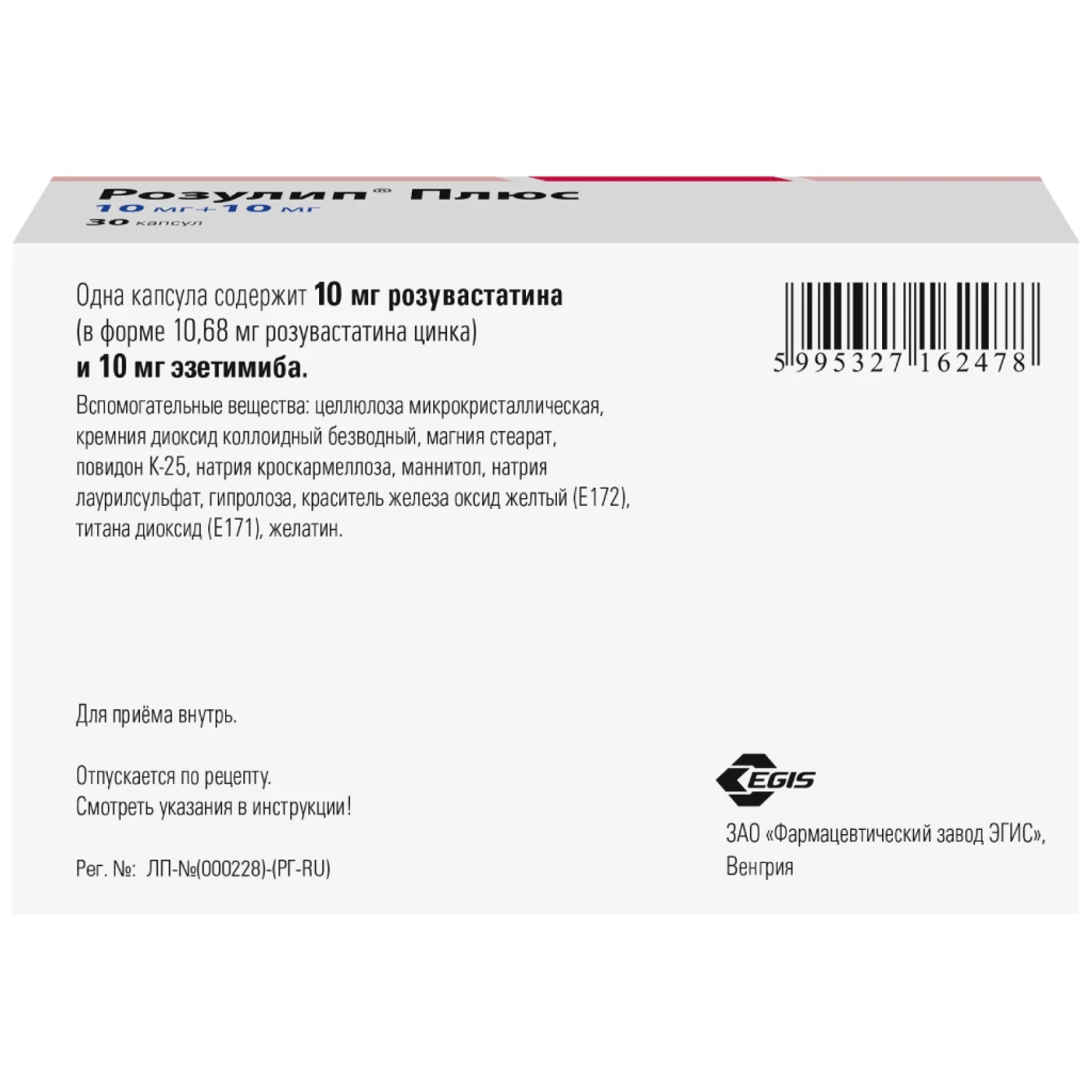Розулип плюс 20 мг + 10 мг 30 шт капсулы