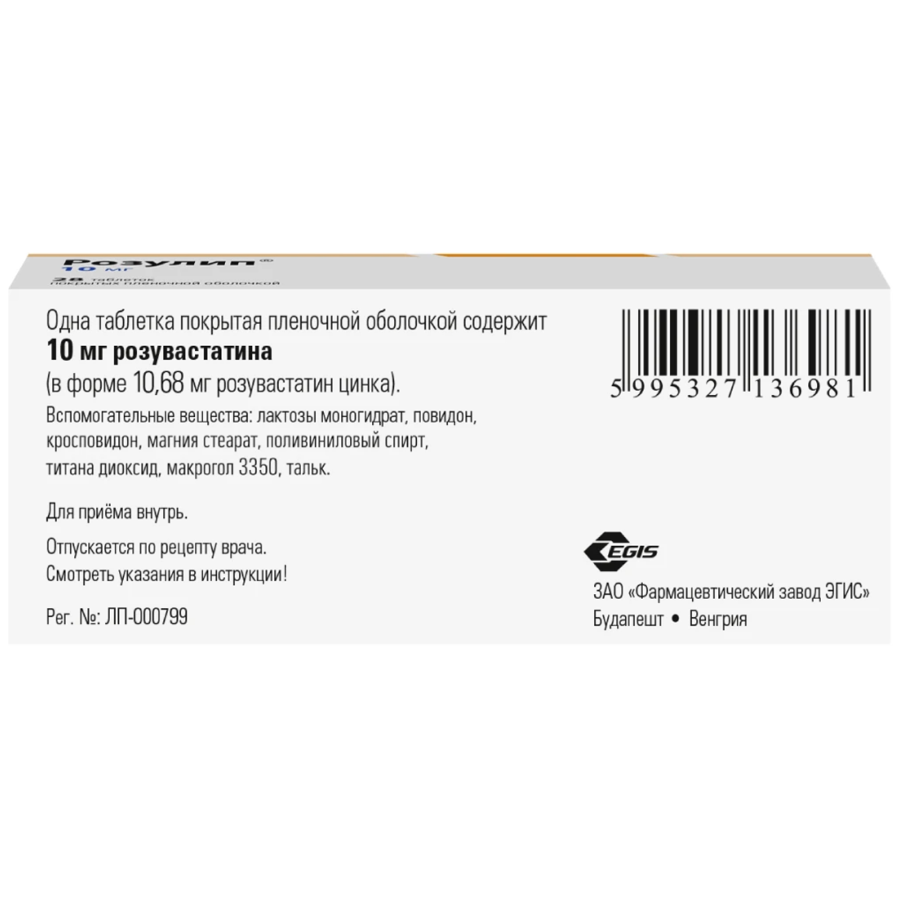 Розулип 10 мг 28 шт таблетки покрытые пленочной оболочкой
