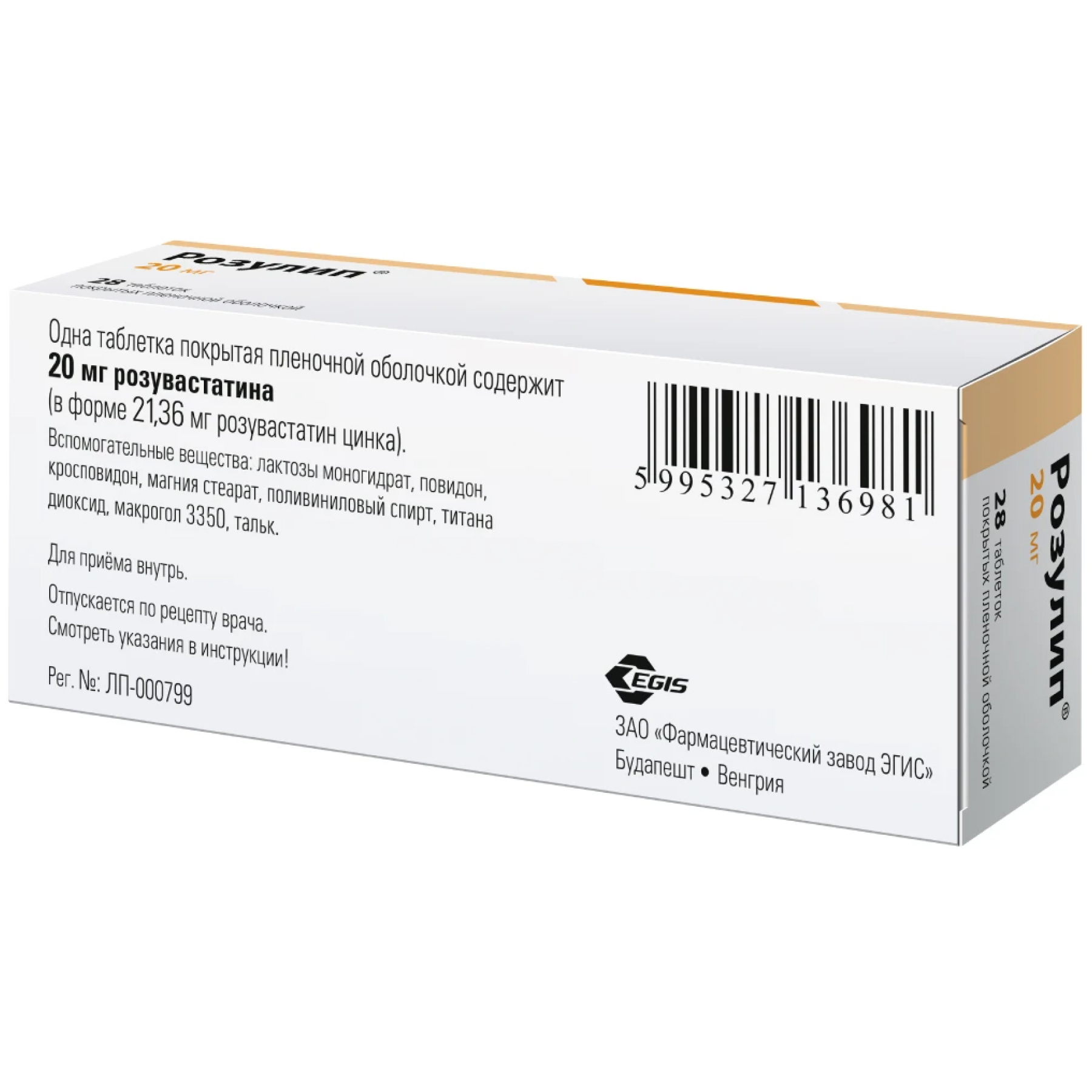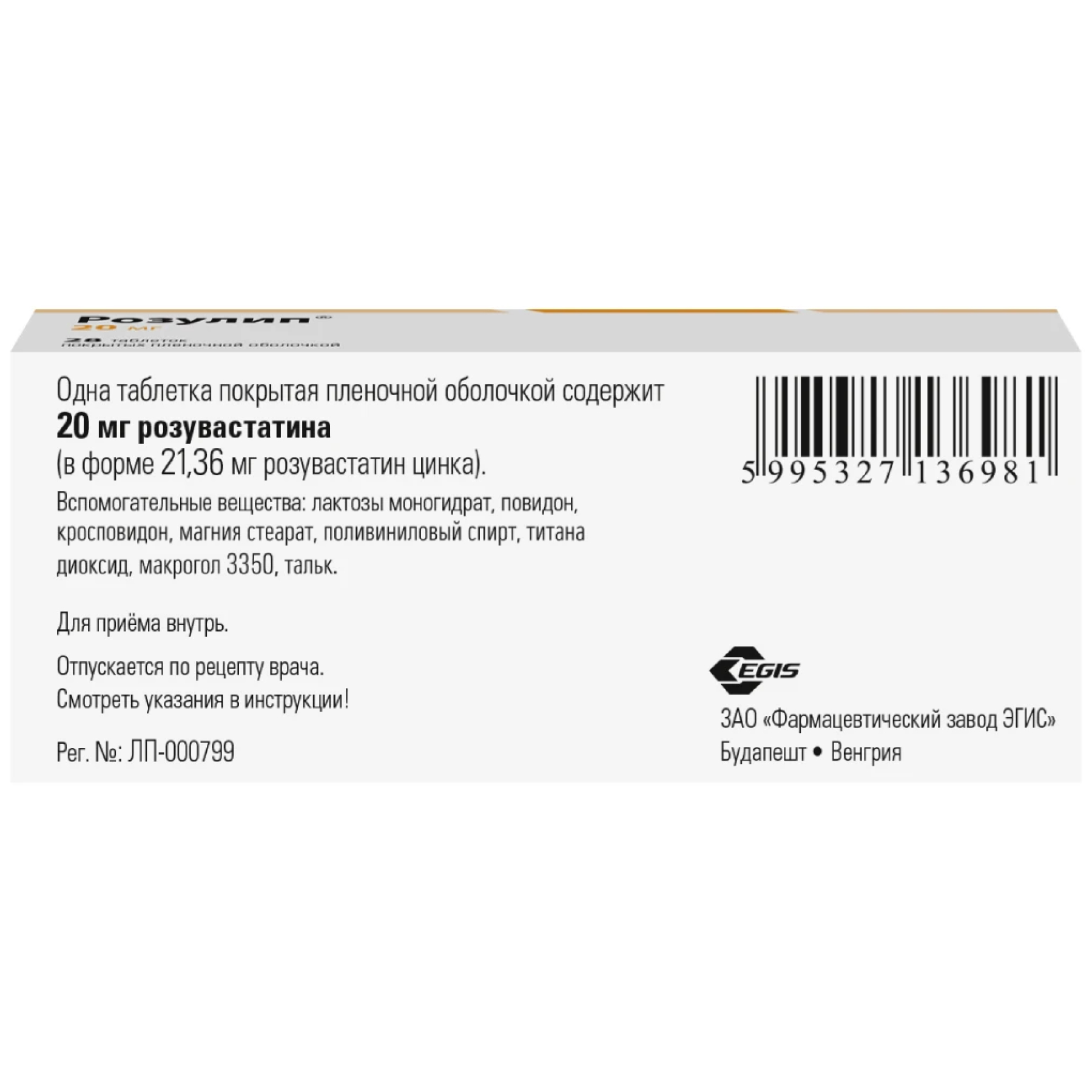 Розулип 20 мг 28 шт таблетки покрытые пленочной оболочкой