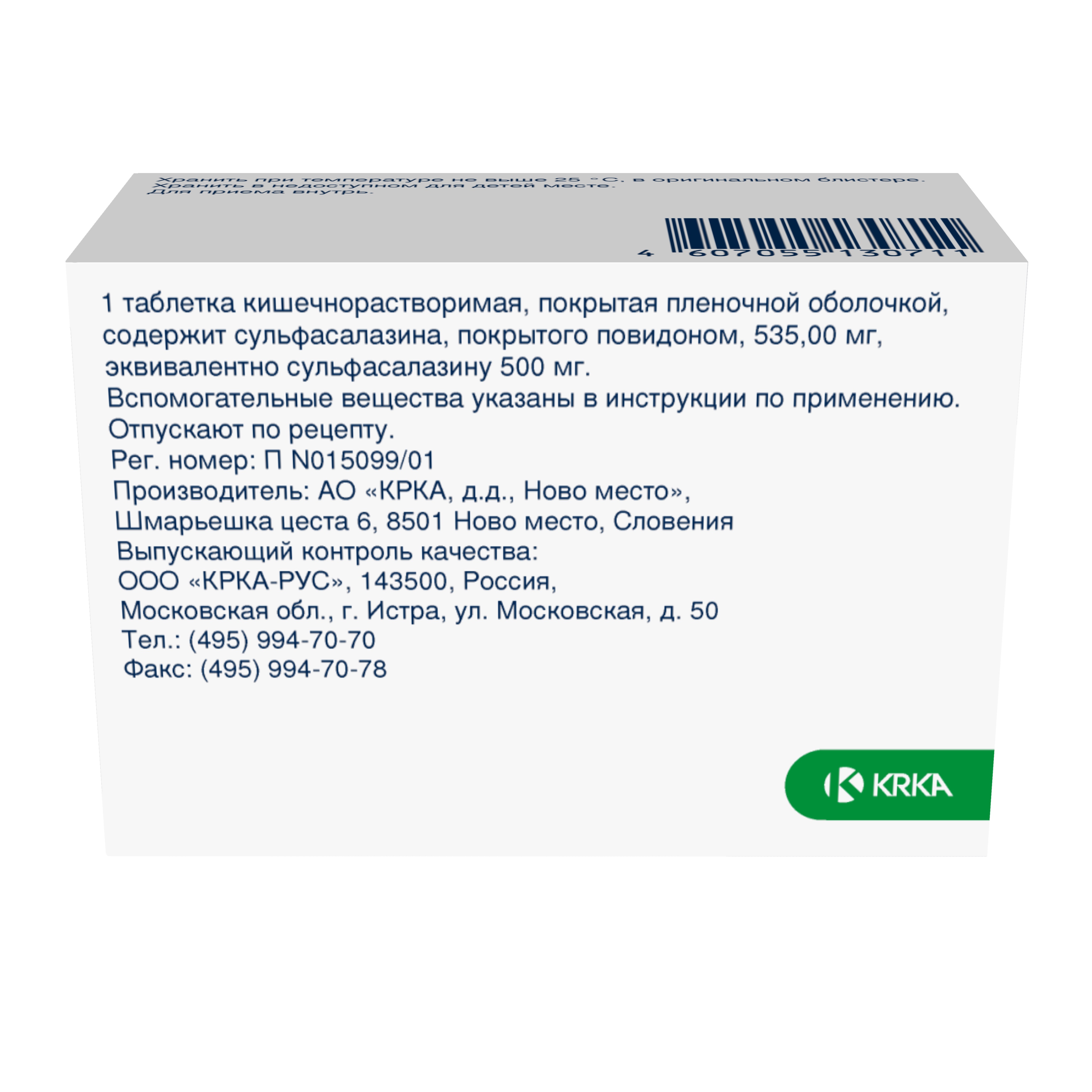 Сульфасалазин 500 мг 50 шт таблетки покрытые пленочной оболочкой
