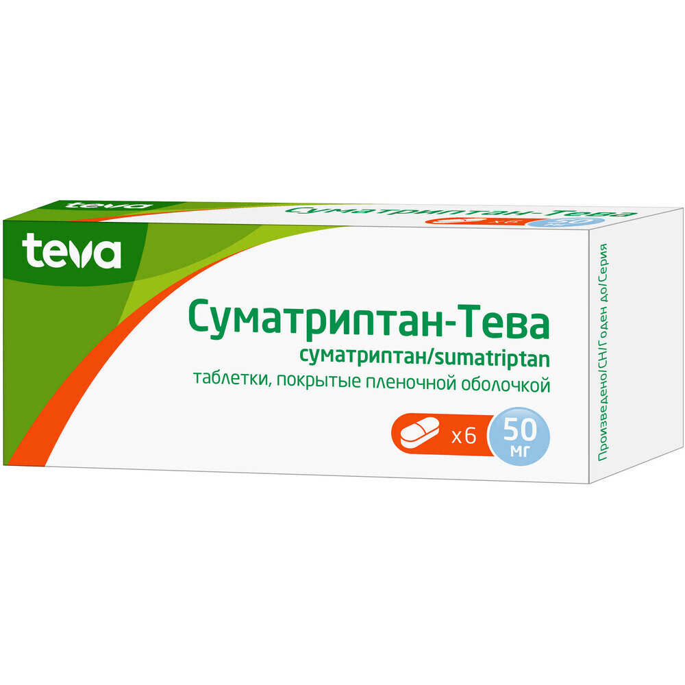 Суматриптан-Тева 50 мг 6 шт таблетки покрытые пленочной оболочкой