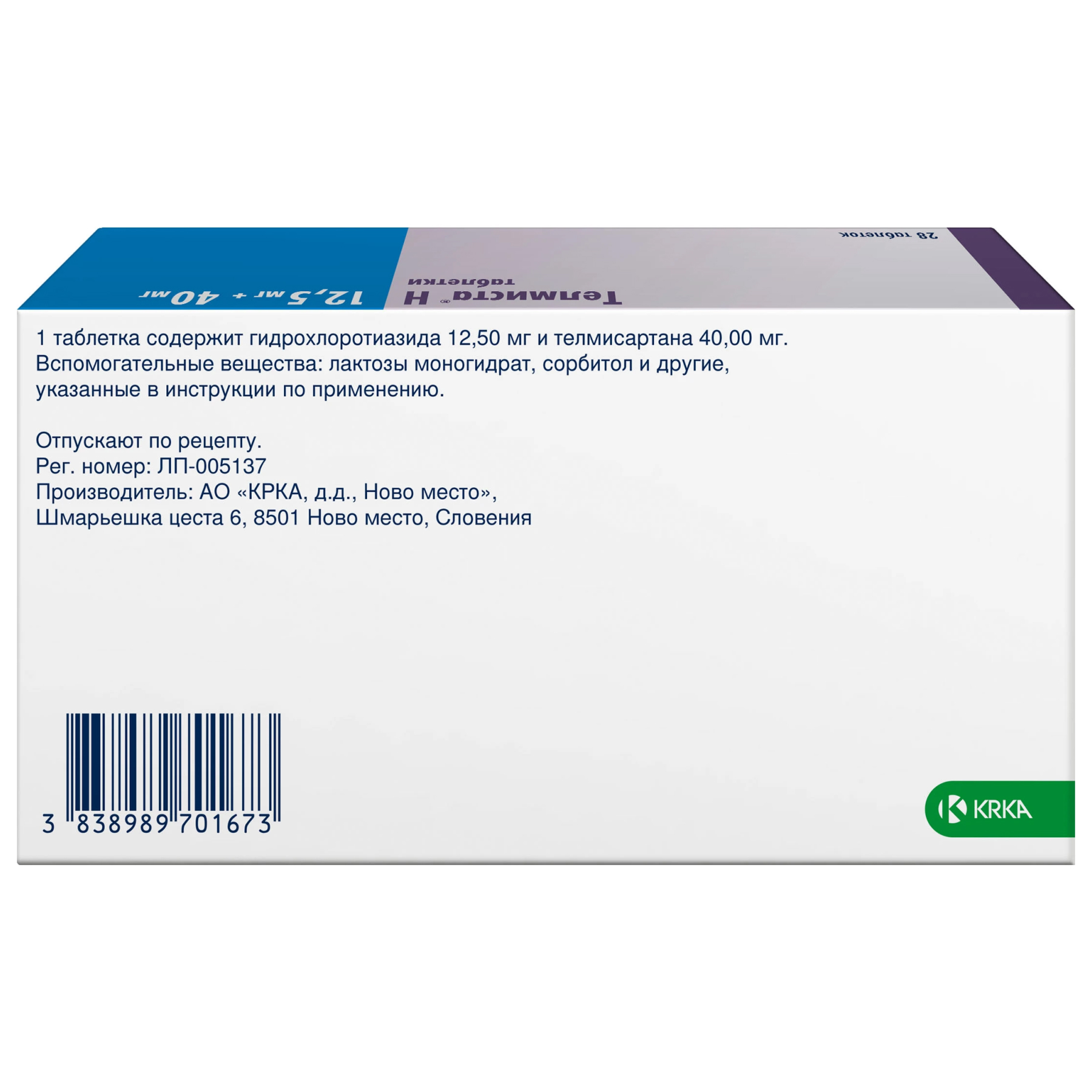 Телмиста ТРИО 5 мг + 12,5 мг + 40 мг 28 шт таблетки