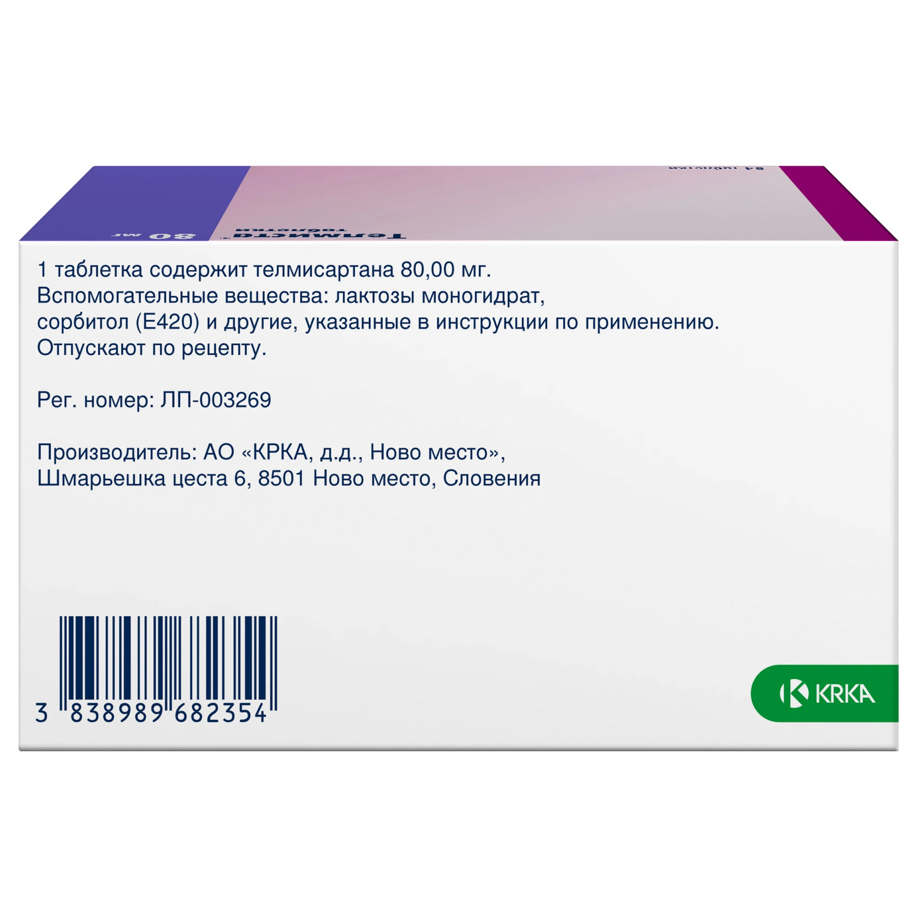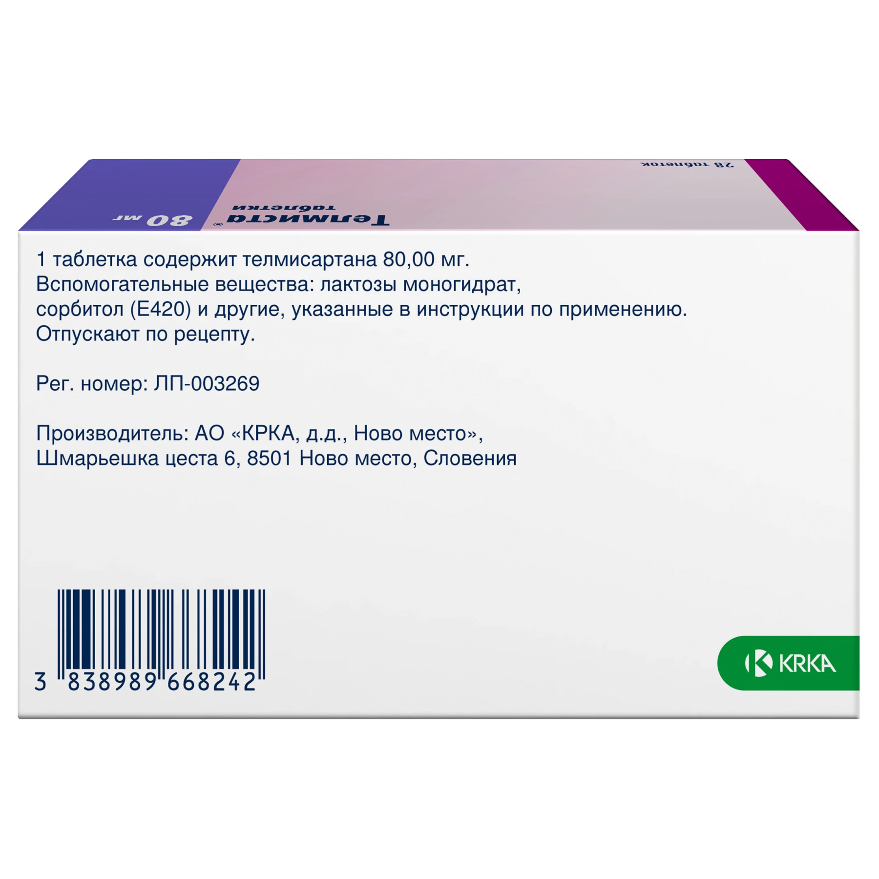 Телмиста 80 мг 28 шт таблетки покрытые пленочной оболочкой