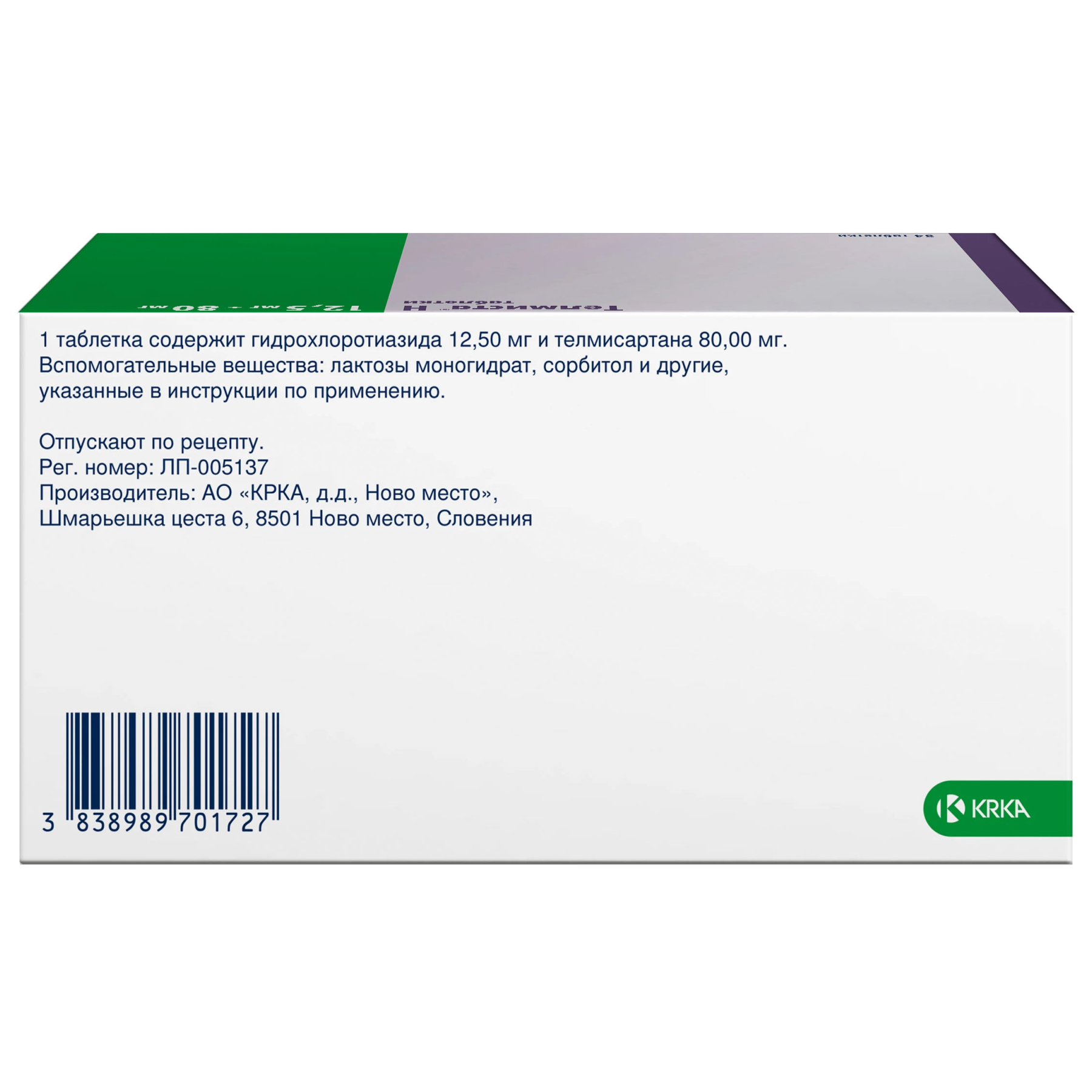 Телмиста Н 12,5 мг + 80 мг 84 шт таблетки
