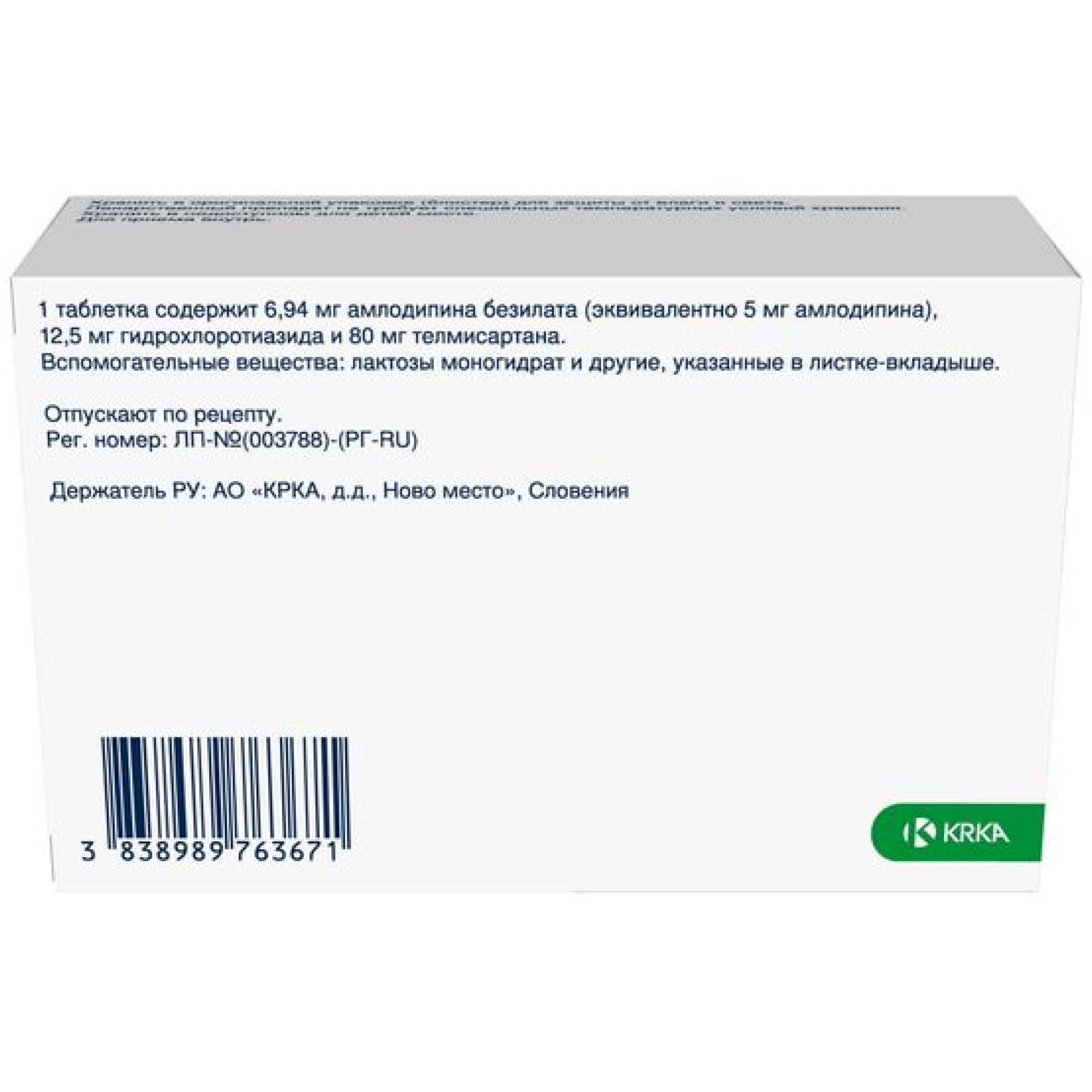 Телмиста ТРИО 5 мг + 12,5 мг + 80 мг 28 шт таблетки