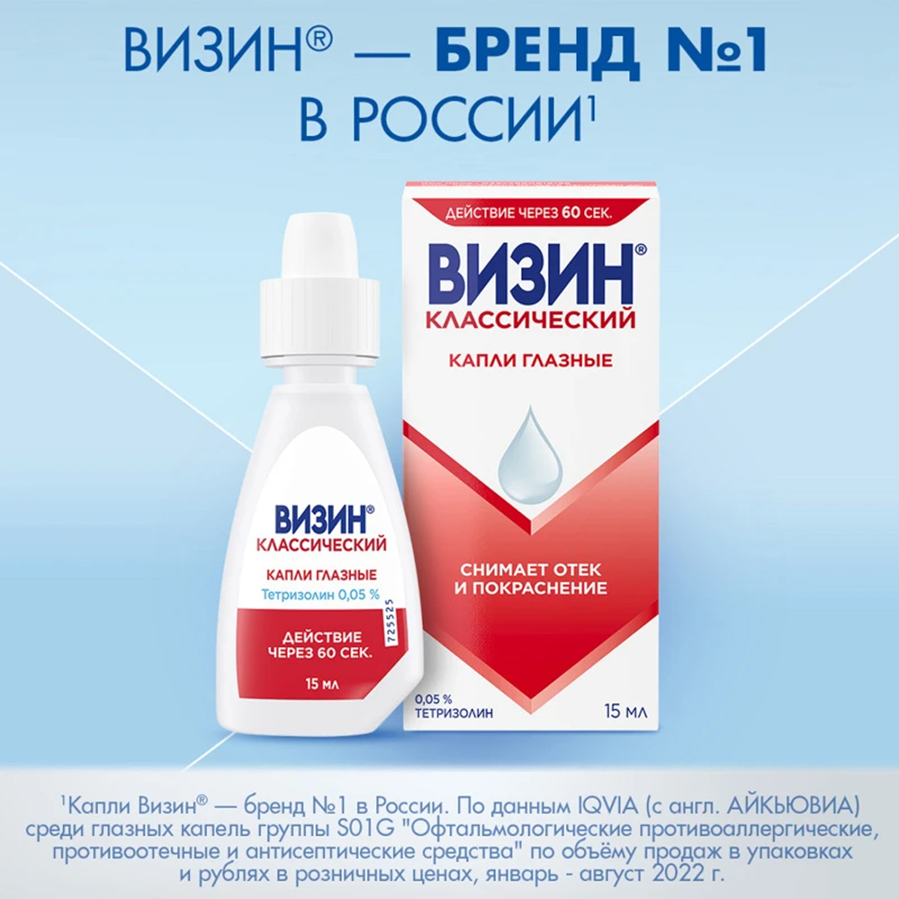 Визин Комфорт 0,05 % 15 мл капли глазные