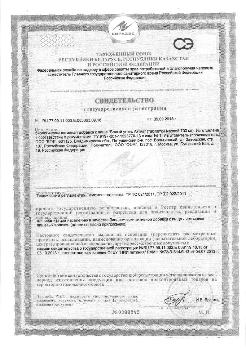 Белый уголь Актив 700 мг 30 шт таблетки